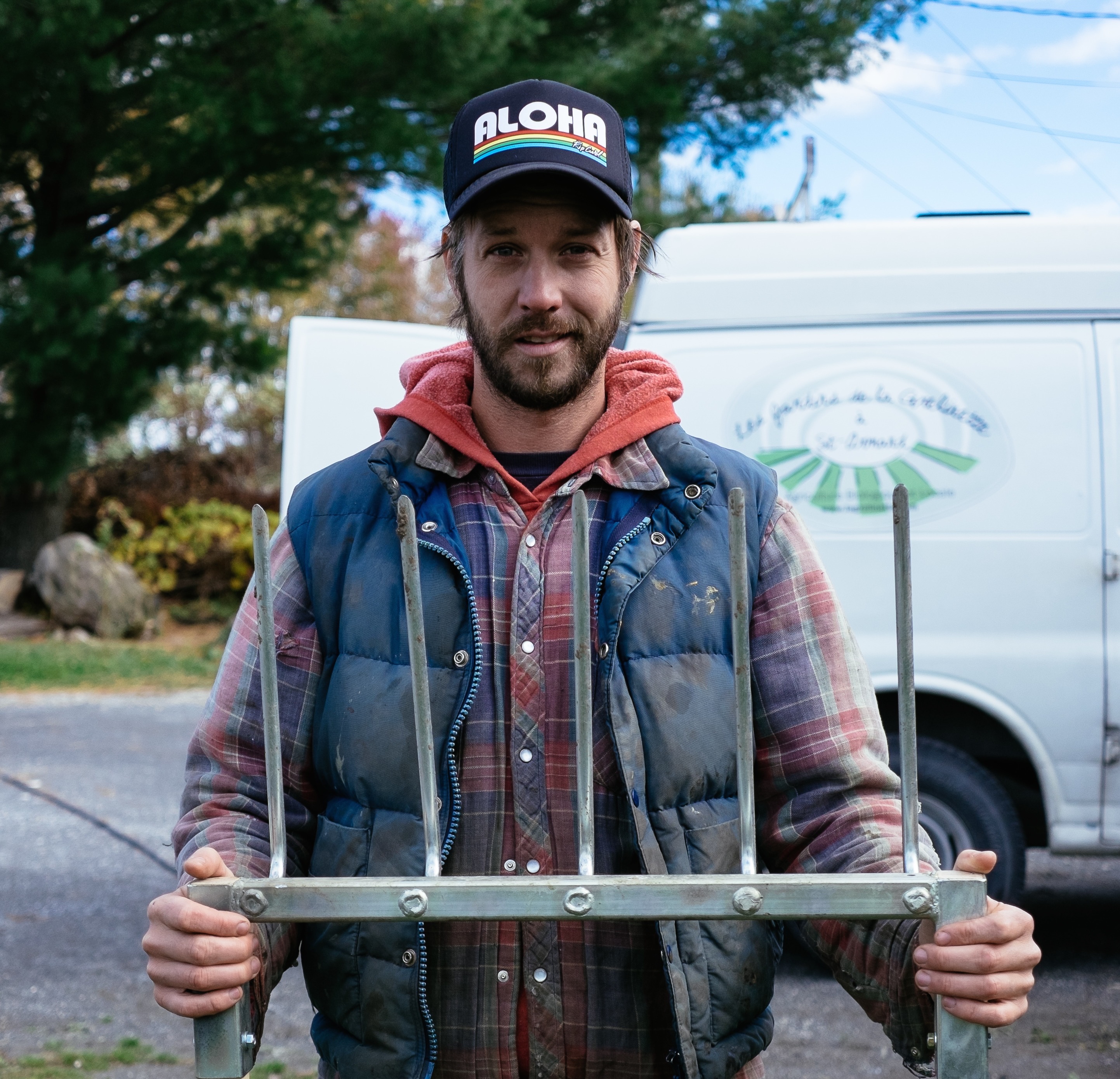 À l’époque, je travaillais avec Équiterre à faire du mentorat auprès de fermes en démarrage, et je remarquais que des fermes qui avaient deux, trois ou quatre années de production n’obtenaient pas les mêmes résultats que la nôtre en termes de productivité. Je me suis alors demandé ce que nous faisions de différent. Par exemple, nous n’utilisions pas de tracteur, ce qui expliquait beaucoup de choses. Je me suis donc mis à coucher sur papier nos méthodes de travail et j’ai eu envie de les partager avec le plus grand nombre de personnes possible, parce que je crois qu’il faut multiplier les fermes de petite surface au Québec. Elles peuvent nourrir leur communauté.