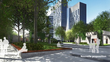 La nouvelle mouture, dévoilée la semaine dernière, est beaucoup plus riche dans sa composition et conserve une partie de la signature singulière du square Viger: les fameuses pergolas de béton. Le site gagne en végétalisation, et les deux tours de ventilation du tunnel Ville-Marie seront dorénavant intégrées au design (contrairement à la version de juin dernier, qui les oubliait bêtement). La première sera dissimulée dans l’architecture d’un café-bistro; la seconde servira à accrocher une œuvre d’art numérique.