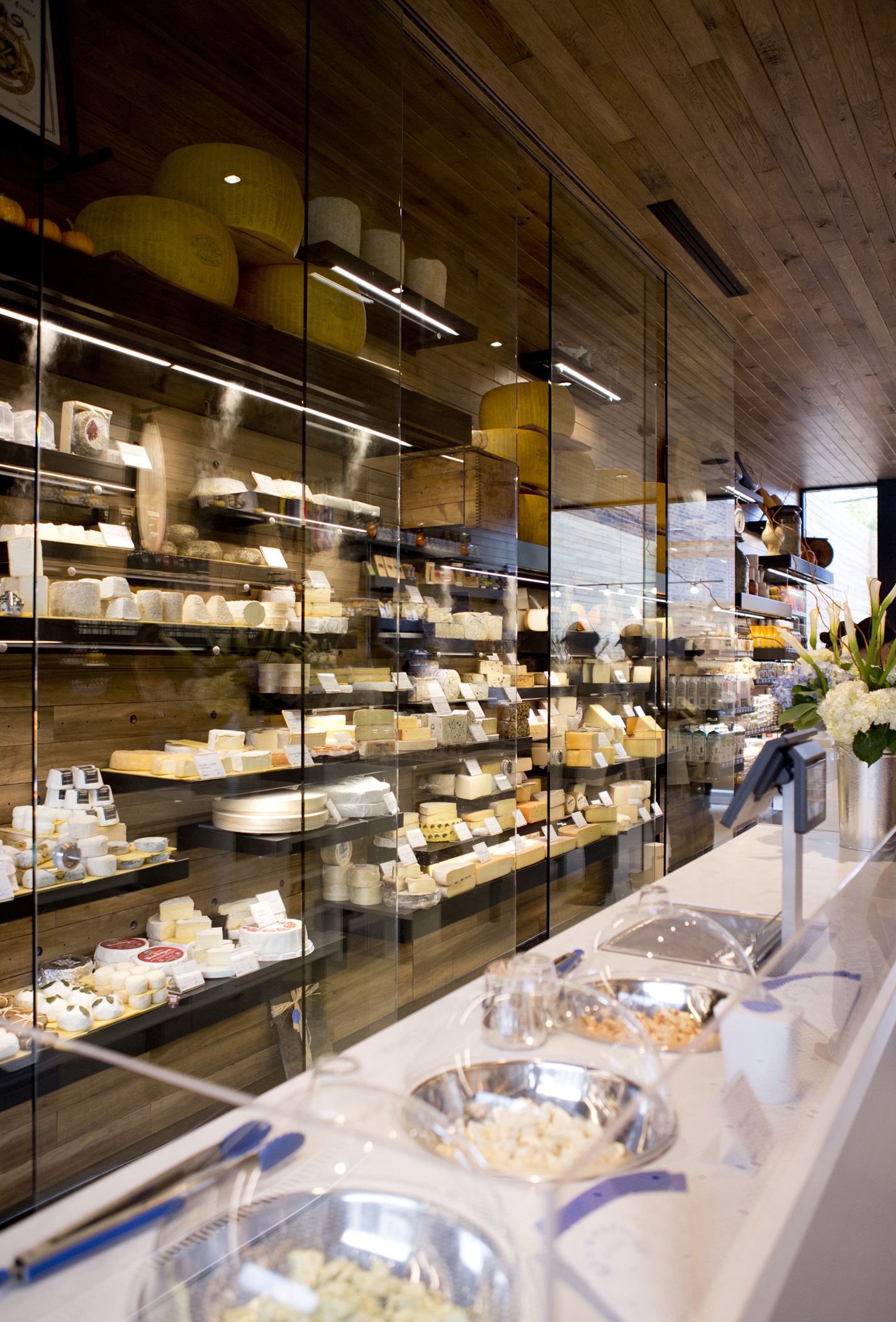 Franck Hénot s’est entouré de l’architecte Jean Beaudoin, de l’entreprise Dauphinais, qui a créé des frigos sur-mesure et de l’Atelier Chinotto pour tout le design graphique de sa fromagerie.