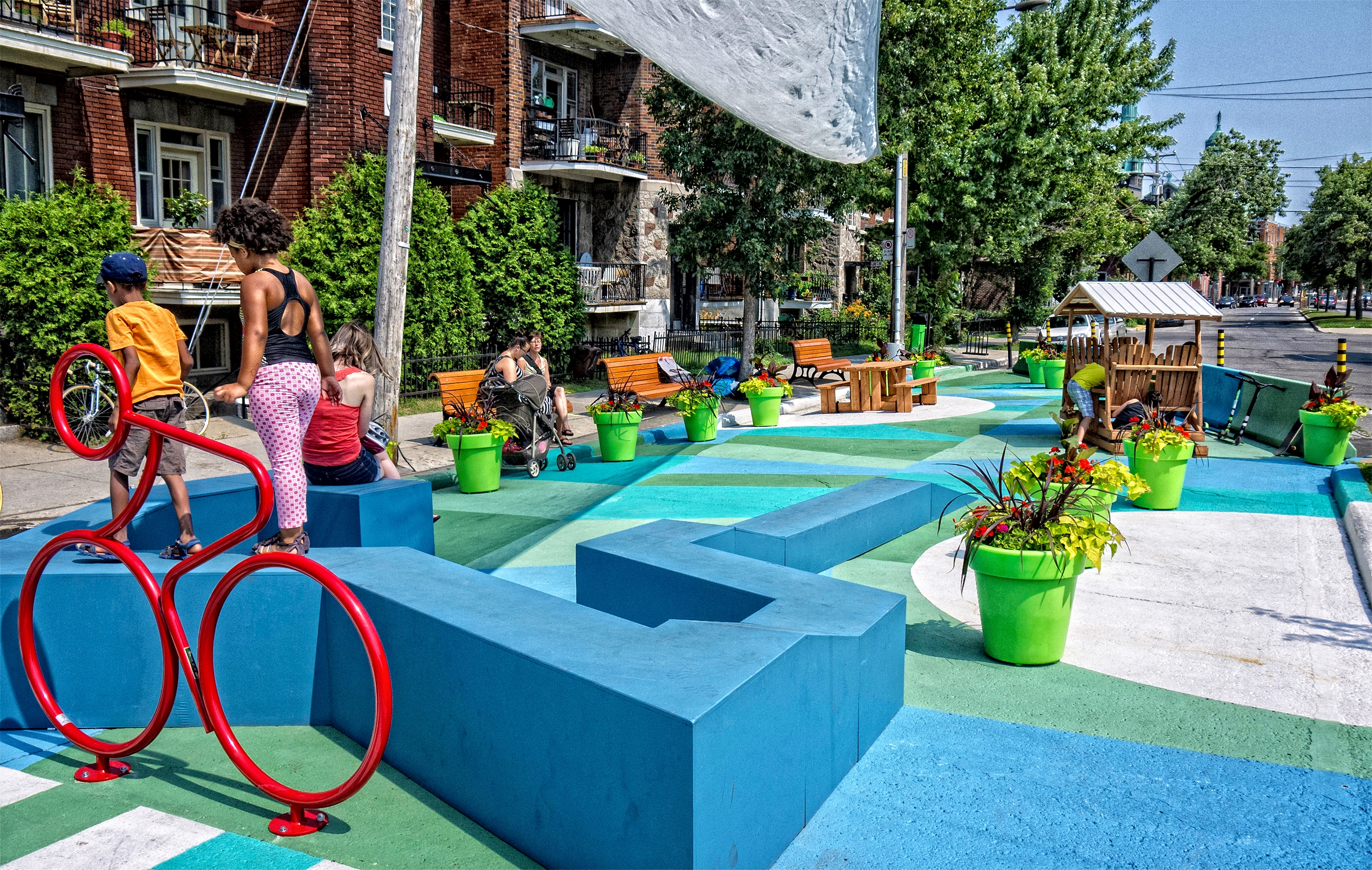 En juillet 2013, les propriétaires du restaurant Tapeo annonçaient la création d’un fonds pour le développement urbain de leur quartier, alimenté par les ventes d’un «tapas du mois» dans leur menu. L’argent amassé depuis la création du fonds, soit plus de 10 000$, a permis de financer partiellement, l’été dernier, l’aménagement d’une place publique colorée à l’intersection des rues Lajeunesse et Villeray. L’initiative, réalisée en collaboration avec l’arrondissement de Villeray-Saint-Michel-Parc-Extension, a permis d’apaiser la circulation automobile, d’embellir une zone fortement minéralisée et de créer un espace ludique pour les enfants du quartier.
