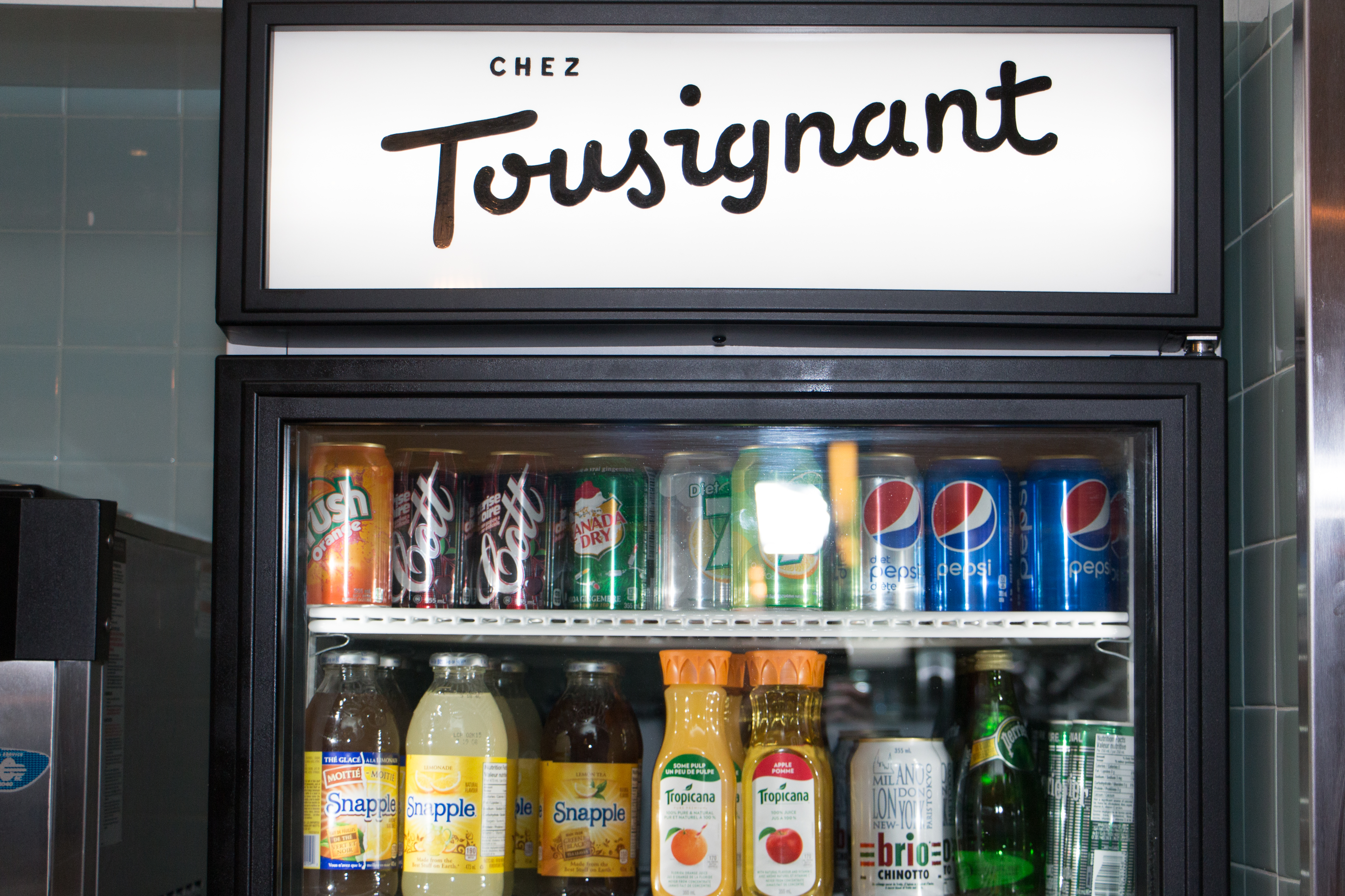 Ces éléments constituent à peu près la seule ombre au tableau, avec les prix de certains items, un peu élevés par rapport à ce qu’on a l’habitude de payer dans un casse-croûte. Mais vu la qualité des produits, on digère assez bien la facture un peu plus salée qu’à l’habitude. Et comme Chez Tousignant est unique en son genre, on paie la note et on pousse la porte pleinement rassasiées.