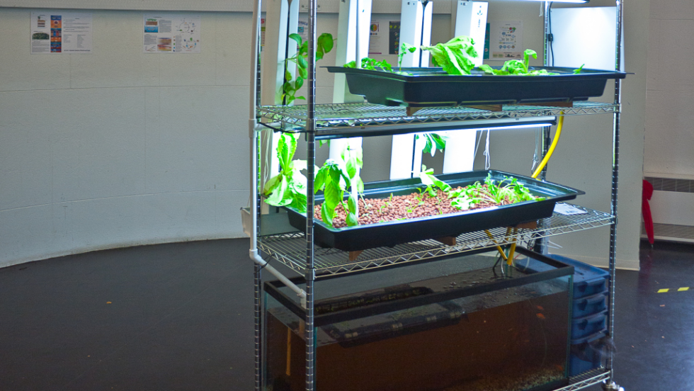 Une ferme de cuisine étagée, où le bocal des poissons fournit engrais et irrigation aux légumes du dessus. C’est ce qu’ont imaginé des chercheurs montréalais. Bienvenue dans le monde de