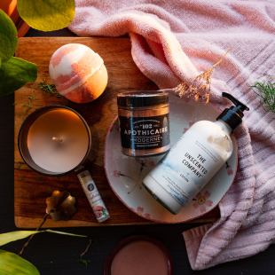 Tous les essentiels pour prendre soin de soi ou de son ou sa partenaire réunis dans un même coffret: une bougie, une bombe de bain, un masque d’argile, une lotion corporelle ainsi qu’un baume à lèvres, tous québécois.