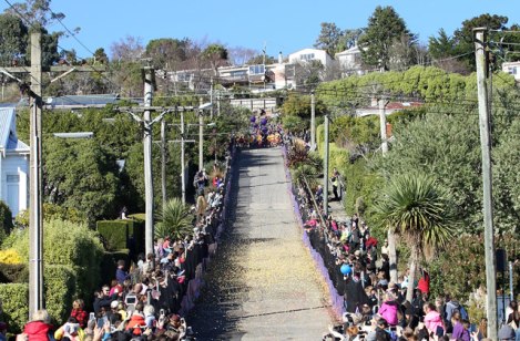 Avec une pente à 19 degrés (35%), la petite rue, située dans la ville de Dunedin, attire beaucoup de touristes.