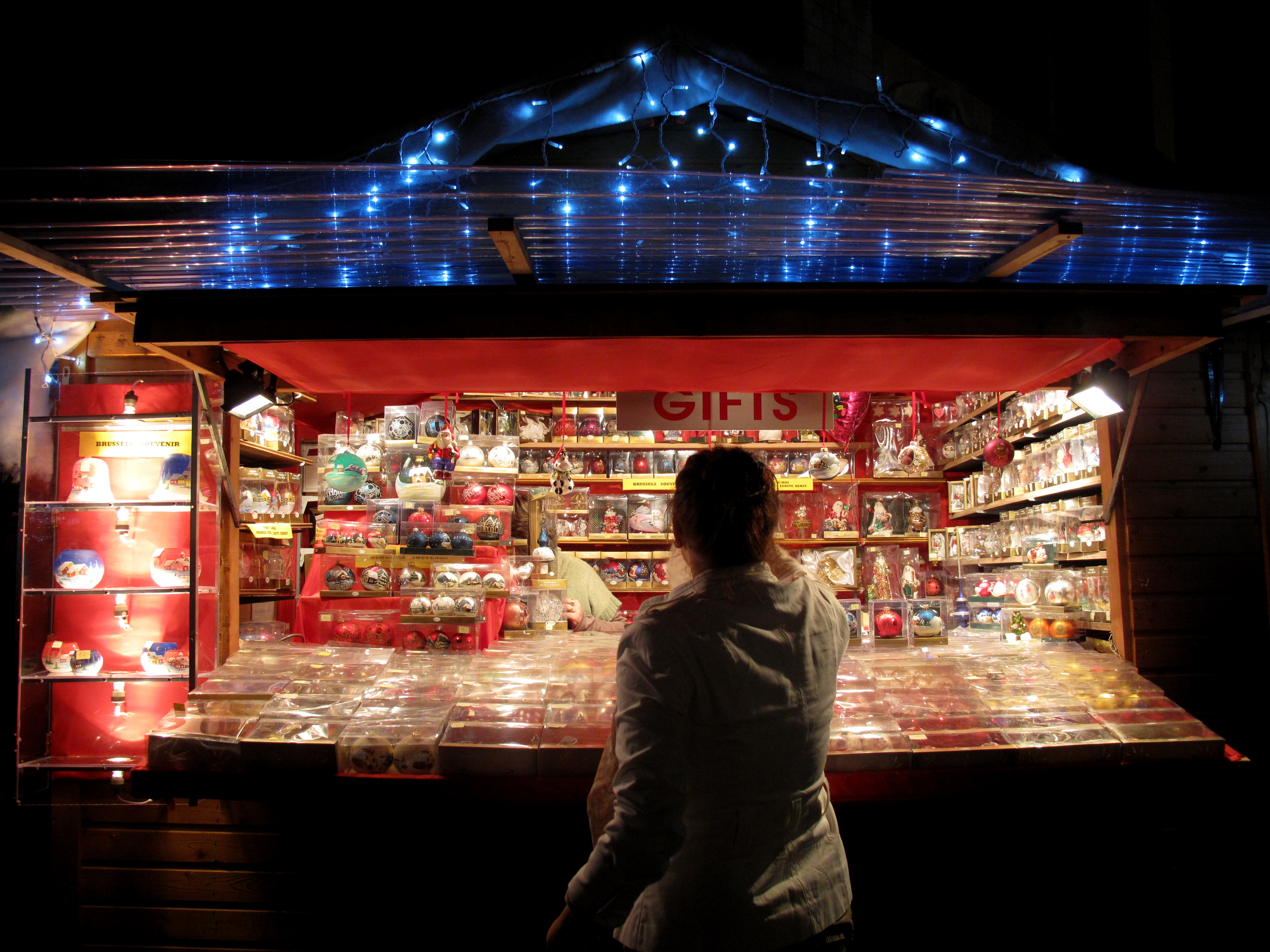 Impossible de parler des marchés de Noël sans mentionner le Christkindelsmärik, nom, en dialecte alsacien, de l’événement annuel qui se déroule chaque année à Strasbourg depuis 1570. Les odeurs de pain d’épices et de vin chaud (le vrai) s’y répandent avec délices (l’auteur de ces lignes est à la fois alsacien et, bien sûr, très objectif). Ici, oubliez les churros, les beignets, les paninis ou les produits de beauté (pourquoi vendre ça dans un marché de Noël?)! Place, uniquement, aux bredele (de petits gâteaux – succulents – de Noël), mannele (des bonshommes briochés), pains d’épices, bretzels et autres produits locaux. Pour conserver l’authenticité d’un des plus vieux marchés de Noël au monde, la Ville a même renvoyé, en 2010, les vendeurs de peluches ou de bijoux qui n’ont aucun rapport avec les fêtes de fin d’année. Et si vous vous baladez dans le coin, n’hésitez pas à faire un tour au sympathique marché de Colmar, voire à celui, mythique, de Riquewihr, un petit patelin alsacien illuminé de guirlandes, où abondent les bâtiments médiévaux aux célèbres façades à colombages.