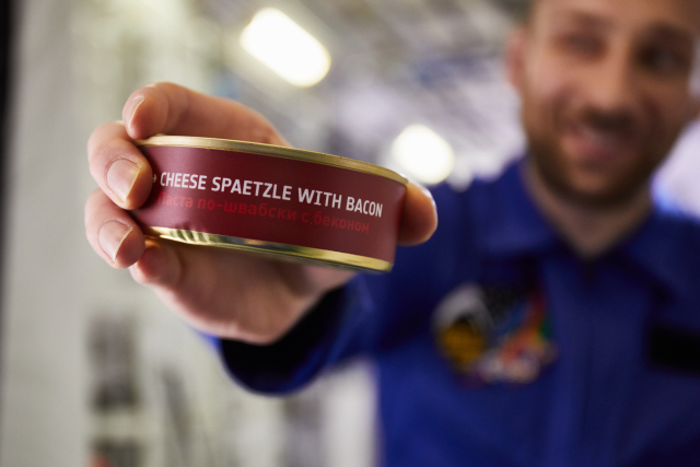 Alexander Gerst a demandé à emporter des plats de sa région d’origine, de Souabe (sud-ouest de l’Allemagne), des spaetzle au fromage et au bacon ainsi qu’un ragoût de poulet aux champignons.