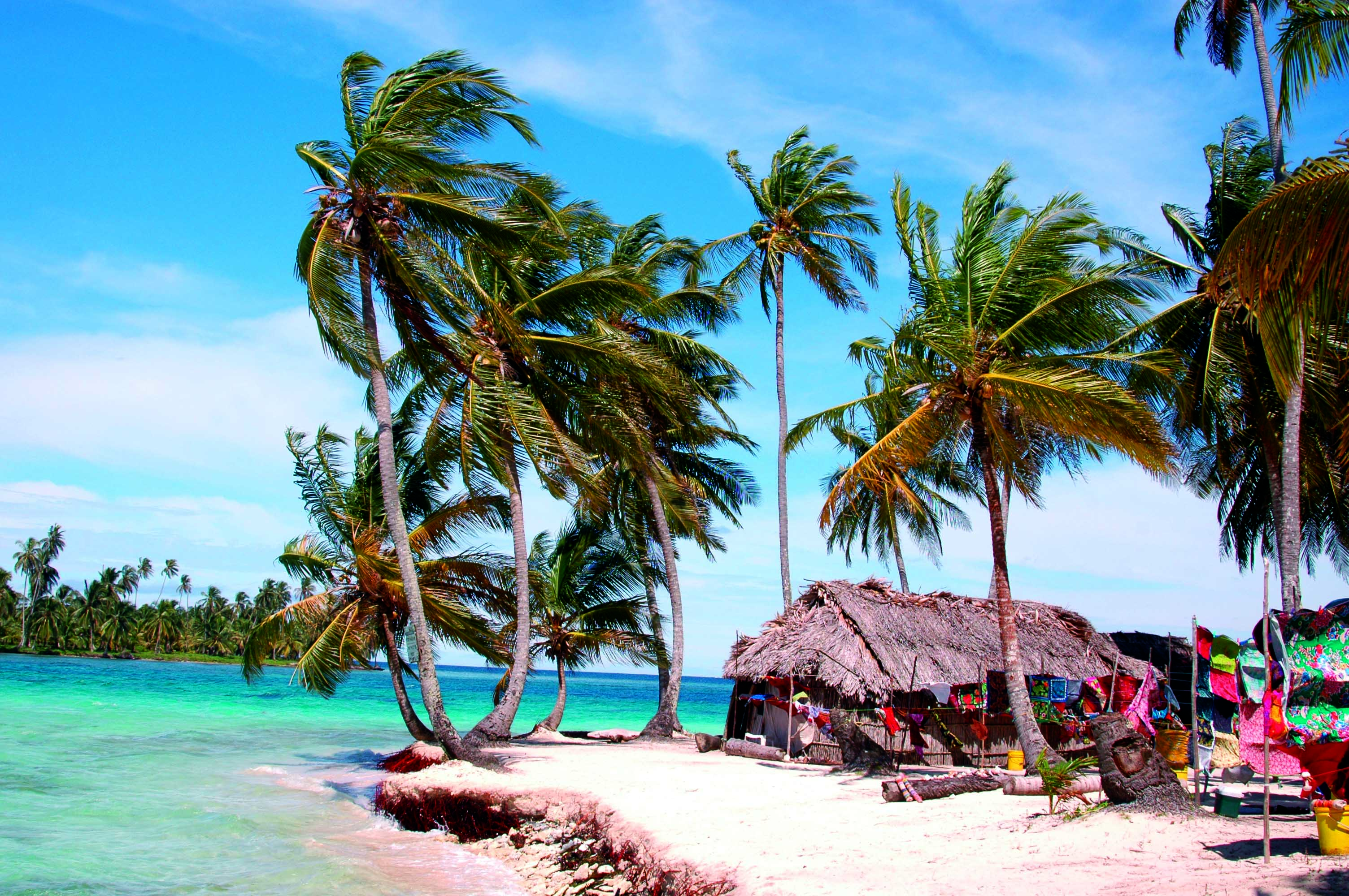 Imaginez plus de 300 îles coralliennes serties au milieu d’une mer d’un bleu turquoise intense, dont seules 60 sont habitées. Prélassez-vous sur une plage au sable fin et doré à souhait sur une île perdue au milieu de nulle part. Bercez-vous dans un hamac entre deux palmiers au son du langoureux grincement de leurs troncs caressés par les vents. Plongez dans des eaux cristallines et pénétrez dans un monde aux couleurs intenses d’une variété infinie. Enfin, au loin, admirez ce magnifique collier d’émeraudes que constitue l’impénétrable jungle de San Blas, une longue bande de terre d’une largeur moyenne d’à peine 10 km bordant la côte jusqu’à la frontière colombienne.