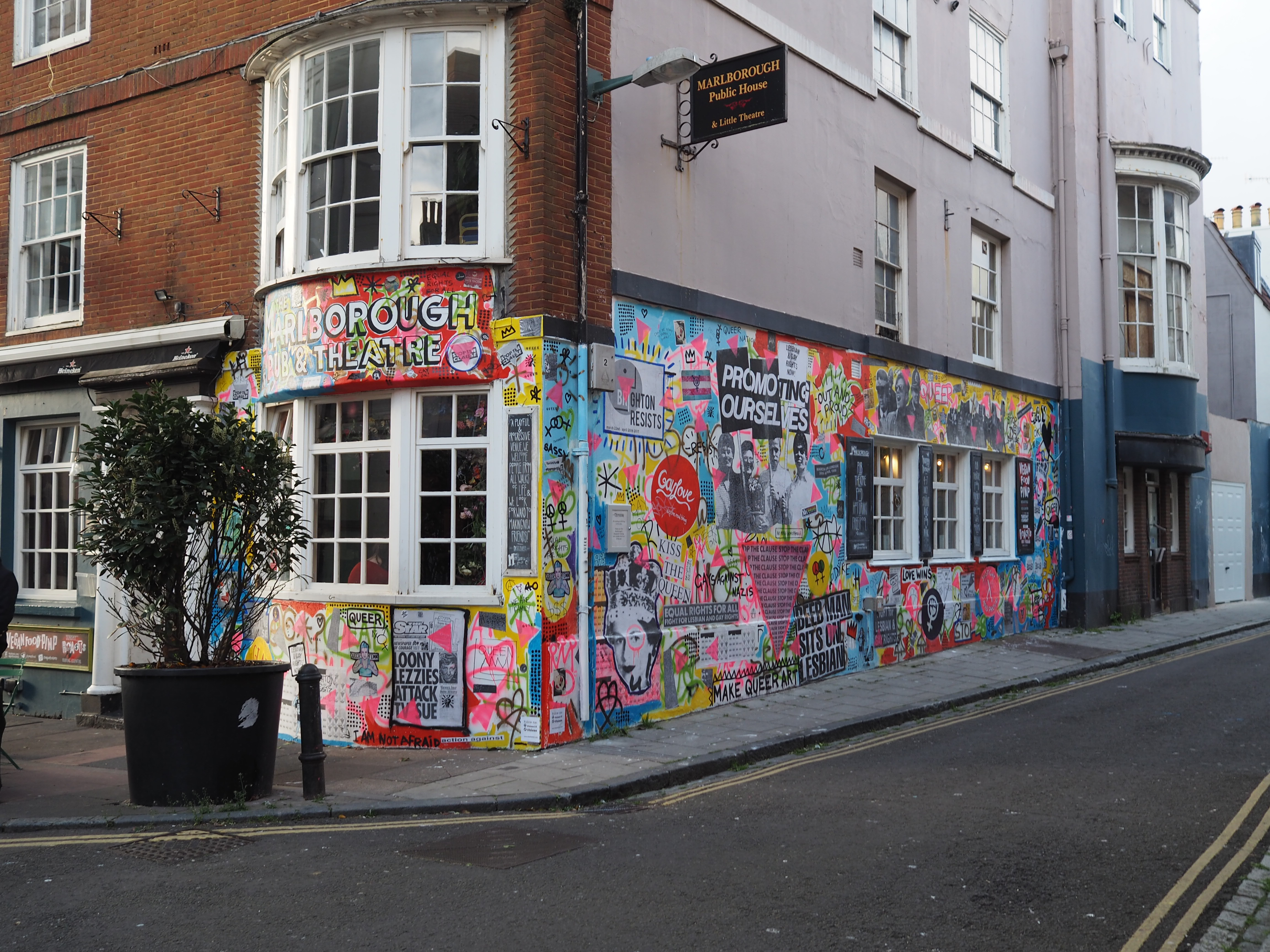 Tout bon livre de voyage vous suggérera d’aller flâner dans les «Lanes», ces jolies rues commerciales remplies de petites boutiques indépendantes et de mignons cafés où il fait bon passer toute une journée. Mais ce qui n’est pas souvent mentionné, et qui mériterait pourtant de l’être, c’est qu’il est bon de garder l’œil ouvert et de prêter attention à l’art de rue. Tous les recoins de Brighton sont décorés de dessins urbains branchés. Certains pubs et magasins sont entièrement recouverts de murales colorées, du sol au toit. On y retrouve même quelques répliques des fameux pochoirs de Banksy.