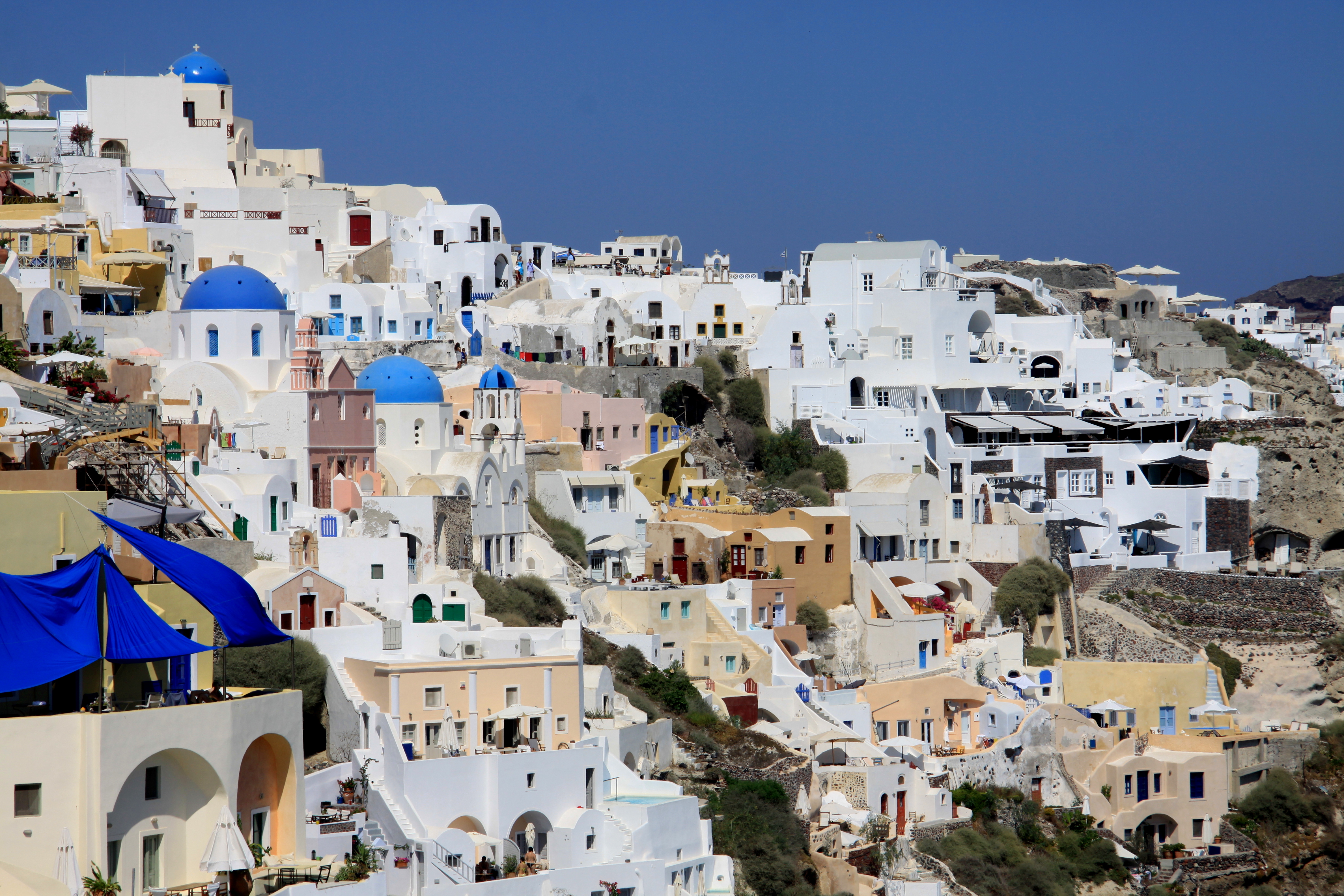 Si vous avez envie d’être en contact avec des habitants de la place, de voir comment les gens vivent vraiment, c’est plutôt à Mykonos que vous pourrez avoir un sentiment de «vraie» vie grecque. Dès que vous vous éloignez un peu du centre de la ville, vous vous retrouvez parmi les petites maisons blanc et bleu où des femmes sont affairées à étendre leur linge, les hommes à déguster leur alcool anisé et les enfants à jouer avec les chats. Santorin est incroyablement plus touristique.