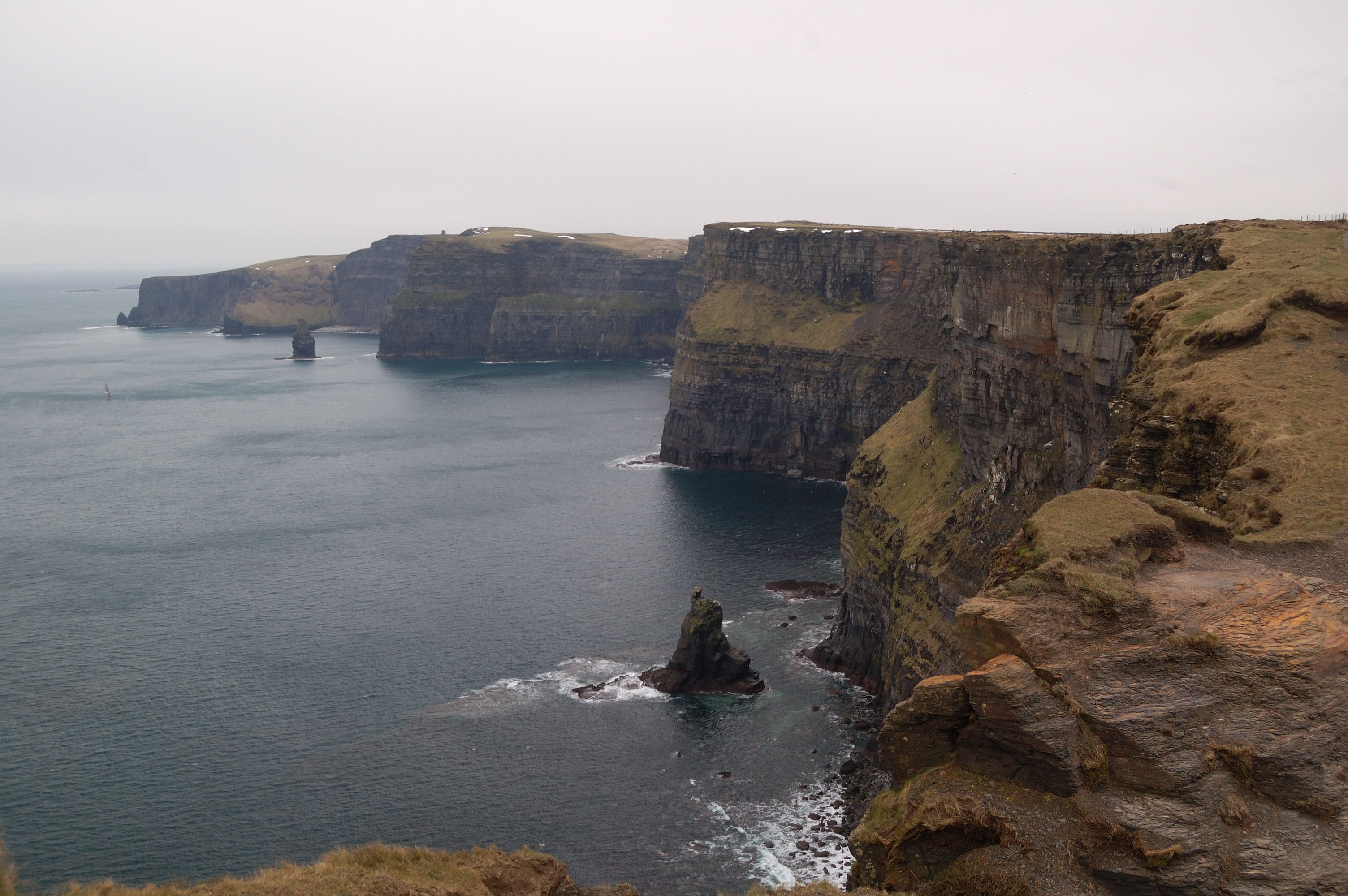 Destination prisée de la côte occidentale irlandaise, les falaises de Moher voient défiler quotidiennement des hordes de touristes au point d’observation situé à l’entrée du site. Mais pourquoi s’arrêter là? Deux sentiers partant en direction opposée permettent de marcher le long des escarpements rocheux pendant plusieurs heures. Et plus on s’éloigne du point de départ, plus la randonnée devient paisible.