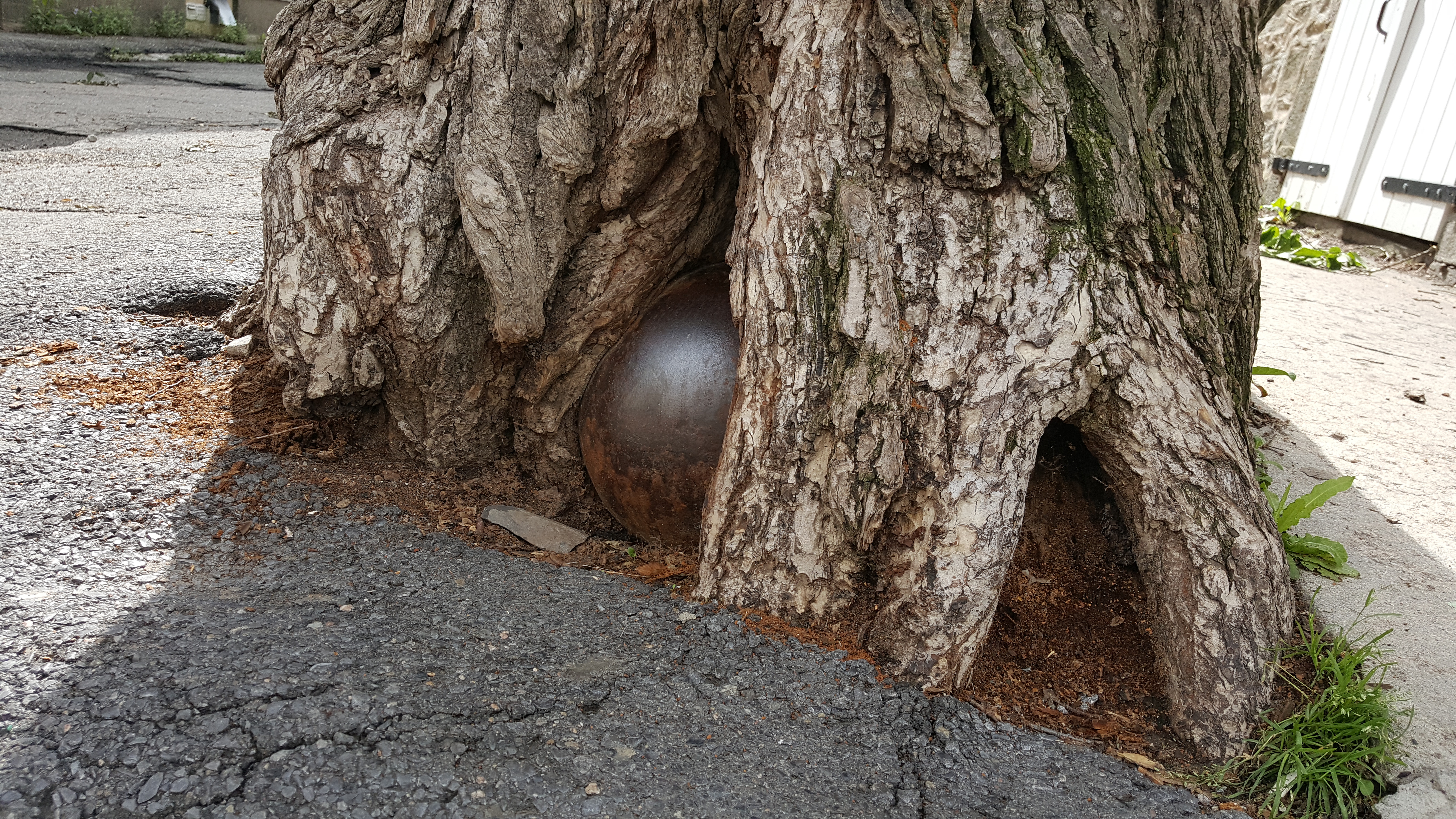 Entre les racines d’un arbre centenaire de la rue Saint-Louis se trouverait un boulet de canon datant de l’époque de la bataille des plaines d’Abraham. «Les boulets de canon de l’époque avaient la taille de gros pamplemousses, donc bien plus petits que cela. En fait, il s’agit d’un chasse-roue pour protéger les coins des murs des bâtisses», révèle la guide.