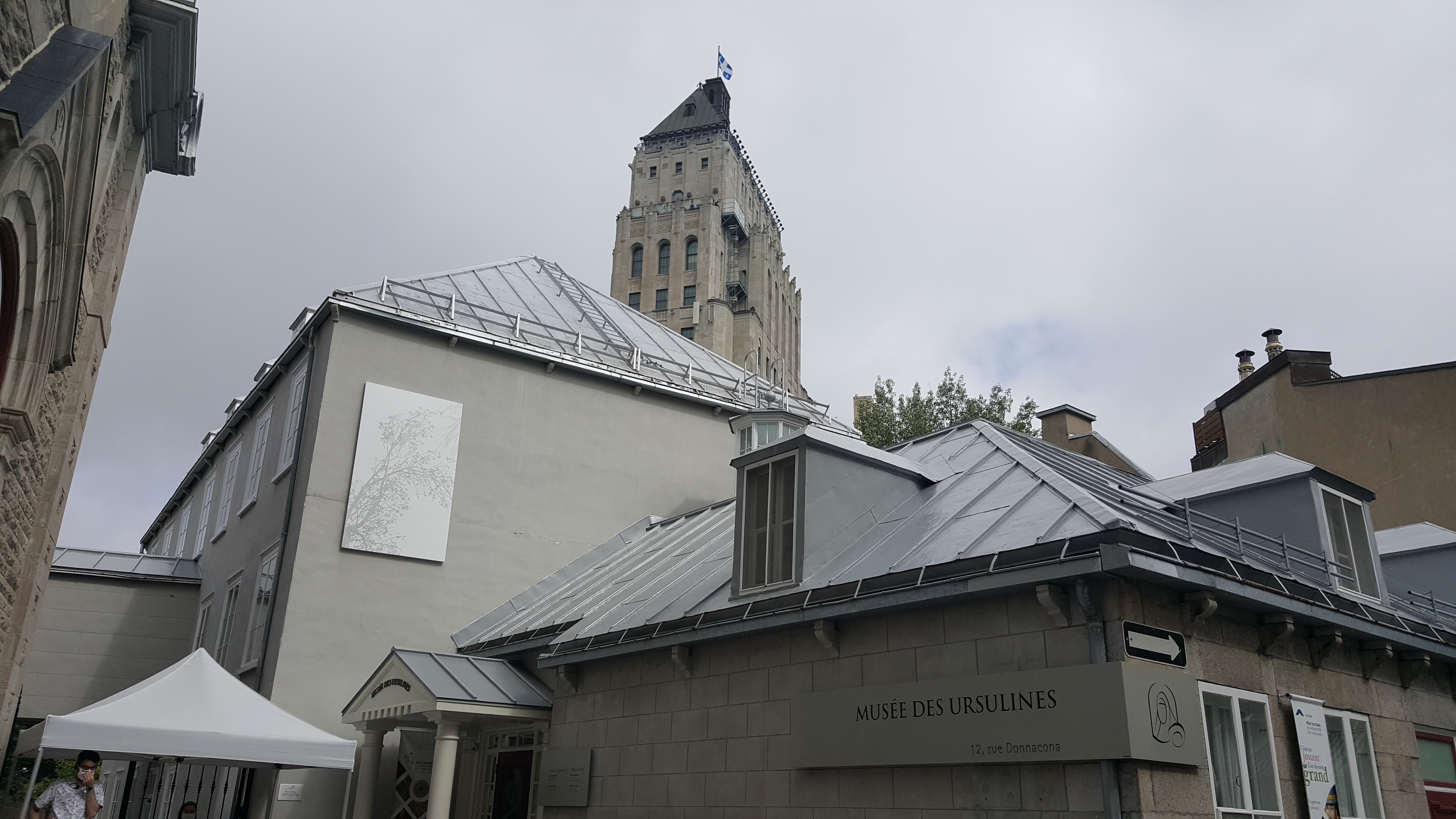 Après l’effervescence de la rue Sainte-Anne, nous effectuons un petit détour par le Musée des Ursulines. Le coin des rues Donnacona et du Parloir où se trouve une statue de Marie-de-l’Incarnation s’avère comme un cocon loin du bruit et de l’agitation. À peine entend-on quelques rires d’enfants du centre de la petite enfance adjacent.