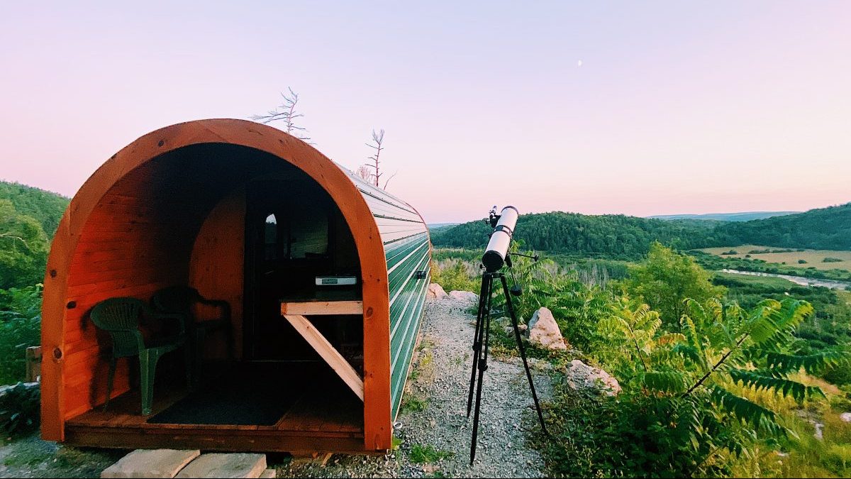 Envie de prolonger l’expérience et de vous éviter de retourner à la maison après l’excursion en soirée ? La nuit dans le refuge Exode offre un point de vue renversant sur la vallée et les collines de l’Outaouais, même depuis son lit douillet, été comme hiver.