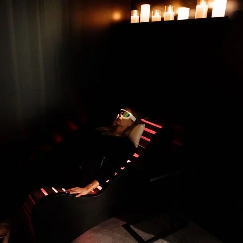 Quant à la lumino-méditation, c’est sur une chaise longue infrarouge qu’on s’étend, casque d’écoute et lunettes de luminothérapie PSiO sur la tête.