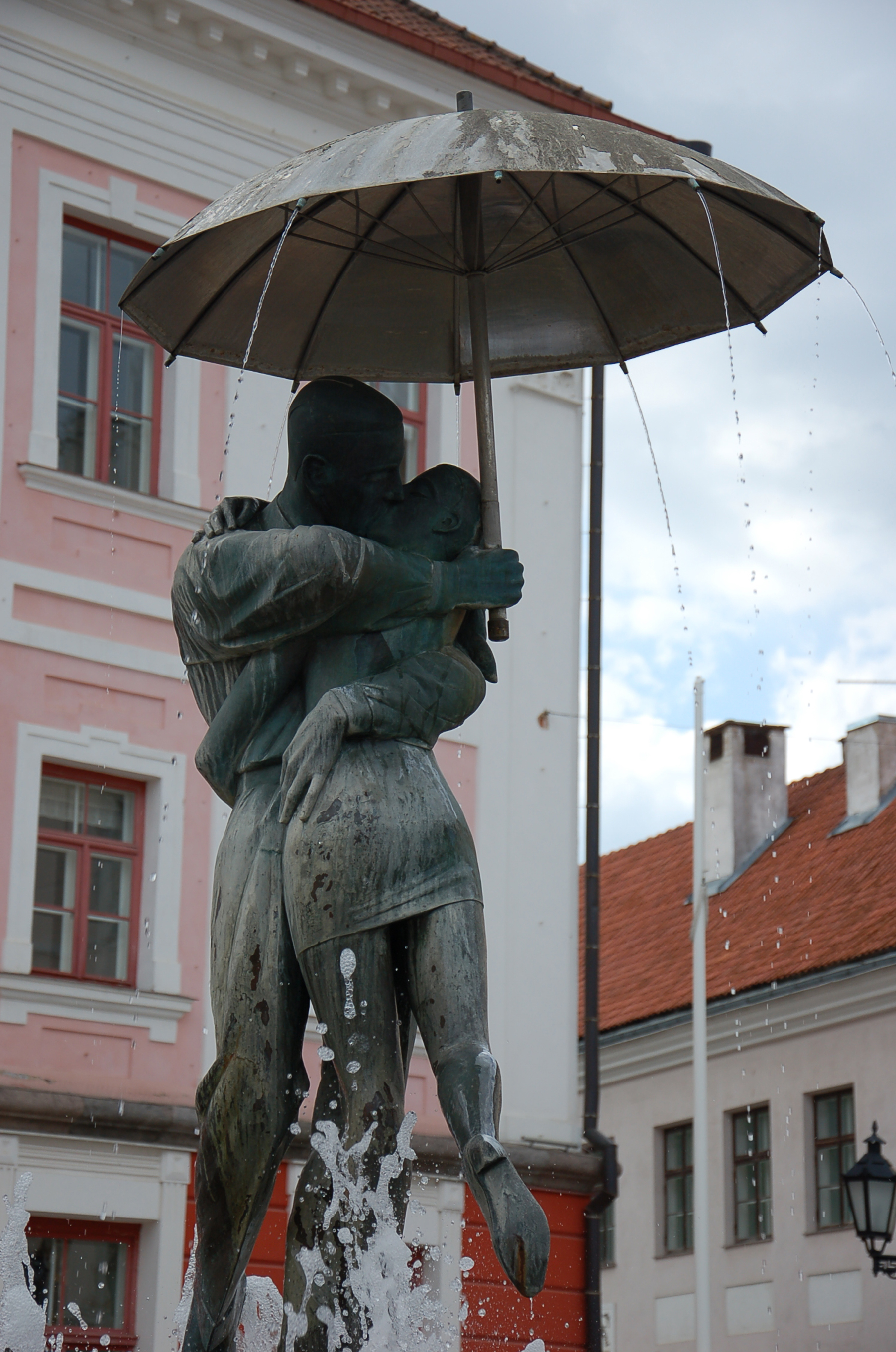 Érigée devant l’hôtel de ville, la fontaine Suudlevad Tudengid est devenue, depuis sa création en 1998, l’emblème de la ville de Tartu. Selon la légende, ces deux étudiants enlacés ont souhaité, un soir d’automne, que leur baiser ne se termine jamais. Au même moment, la foudre les a frappés, figeant le couple sur place pour l’éternité. La célèbre sculpture est l’œuvre de Mati Karmin, un artiste estonien.