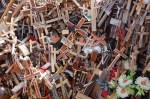 Des croix, partout des croix. L’œil met du temps à s’habituer au fouillis inextricable d’objets de toutes sortes qui recouvre la colline. Des énormes crucifix de quelques mètres de haut jusqu’aux allumettes reliées par un élastique, en passant par les rangées de cailloux grossièrement alignés, tous les moyens sont bons pour déposer sa croix à Kryžių Kalnas.