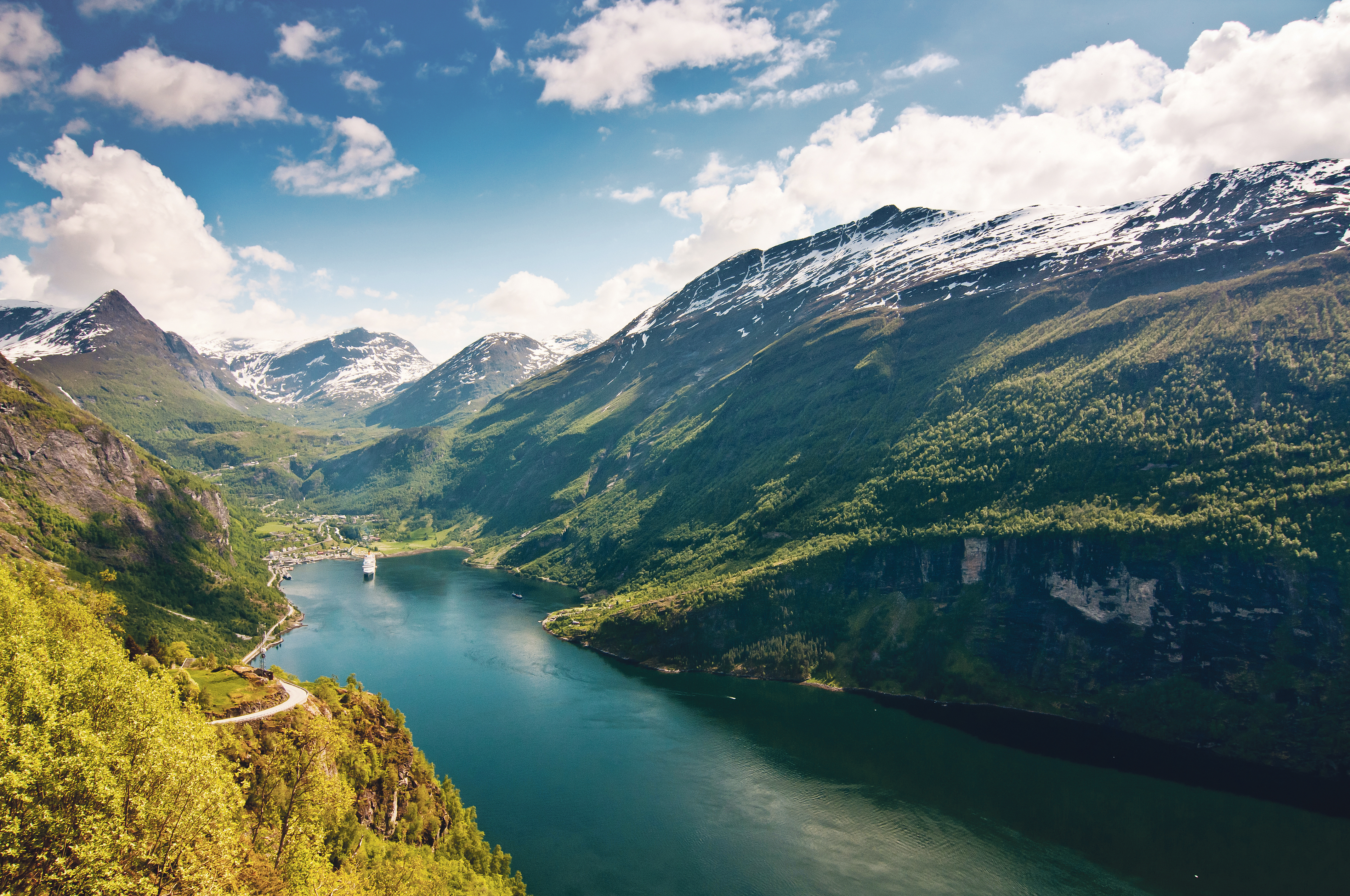 Situé à la hauteur d’Älesund, ce fjord est réputé dans le monde entier. Très encaissé, avec des parois rocheuses abruptes, il fait une forte impression, avec des eaux sombres qui semblent hostiles puis s’apprivoisent sous les rayons du soleil, le ciel intense qui apparaît tel un morceau de toile déchiré entre deux parois d’où jaillissent furieusement des cascades inouïes. Ici, les «Sept sœurs» et le «Voile de la mariée» sont des vedettes.