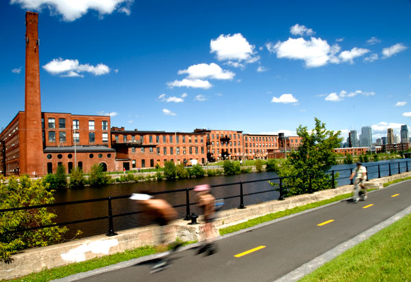 Rien de mieux que la boucle de 35 km qu’on vous propose ici pour saisir, à Montréal, l’intensité du fleuve Saint-Laurent et le charme discret du canal de Lachine. Le magazine Time, dans son palmarès mondial des meilleurs parcours urbains à vélo, a classé celui du canal au troisième rang. En selle! Départ devant l’édicule de la station de métro Square-Victoria, à l’intersection des rues McGill et Saint-Jacques. Emprunter la piste cyclable de la rue McGill vers le sud.