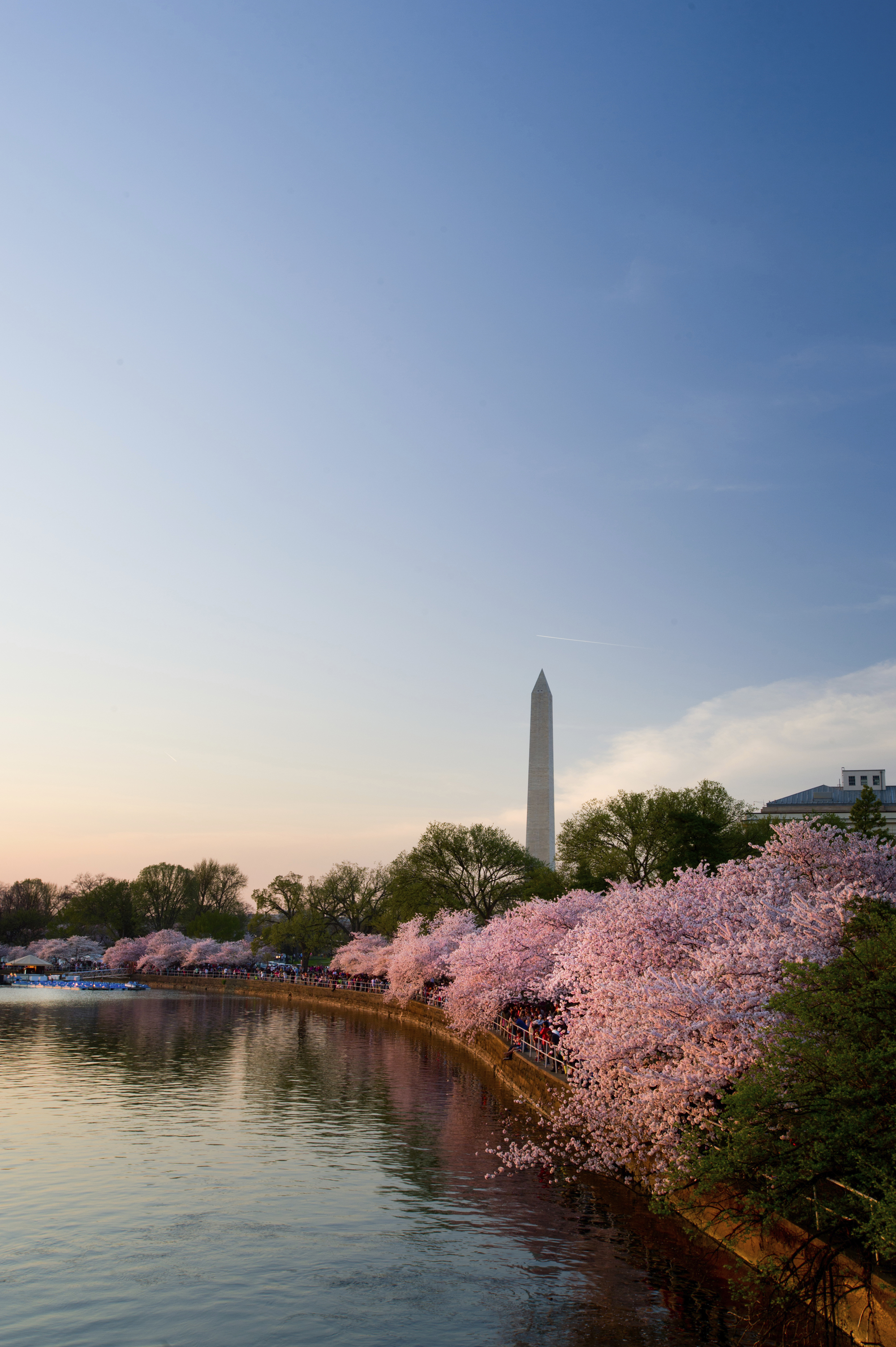 Créé comme réservoir d’eau douce entre le fleuve Potomac et le Washington Channel, le Tidal Basin est bordé de cerisiers offerts par le Japon en 1912. Les visiteurs qui séjournent à Washington vers la fin du mois de mars et durant les premiers jours d’avril peuvent les contempler alors qu’ils sont en fleurs, un spectacle irrésistible devenu iconique de la capitale américaine.