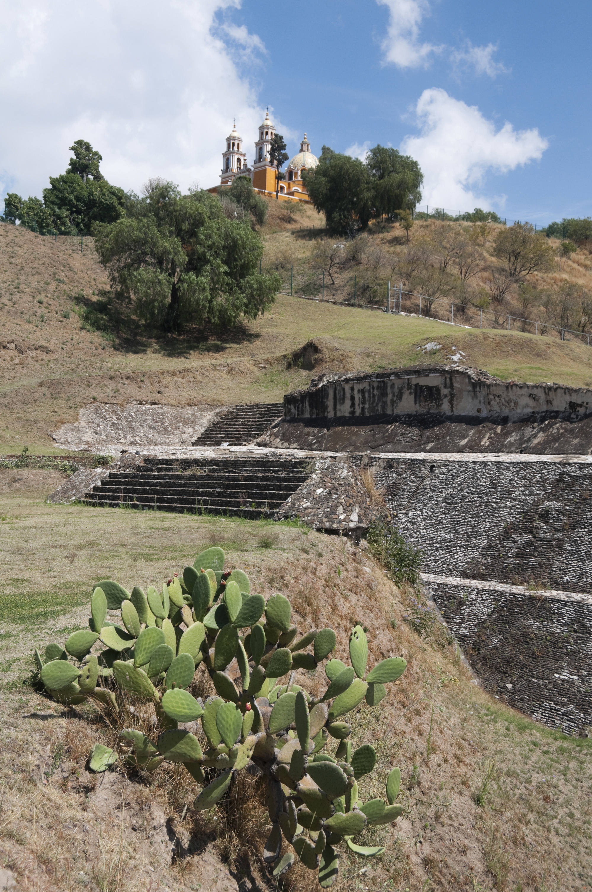 L’exemple le plus célèbre est celui de Cholula, une ville coloniale qui aujourd’hui s’étend à proximité de Puebla, à l’ombre des neiges éternelles de deux volcans, et qui est célèbre pour ses presque trop nombreuses églises. Cholula était la capitale secondaire de l’Empire aztèque et recèle la plus grosse pyramide jamais construite, Tlachihuatépetl, dédiée à Chiconauhquiáhuitl, dieu des neuf pluies. Juste après la Conquête, on y a bâti la grande église de Nuestra Señora de los Remedios.