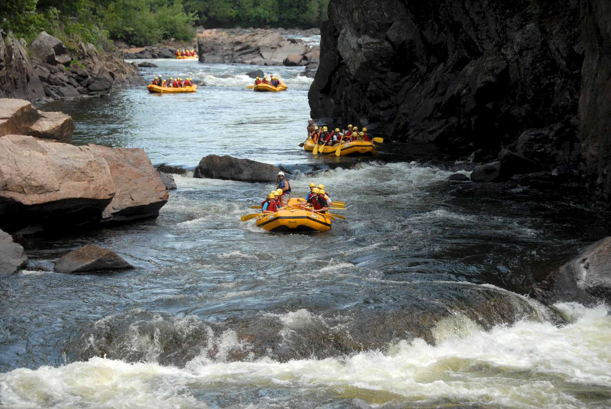 La région des Laurentides offre, grâce à l’excitante rivière Rouge, de très bonnes conditions d’eau vive, parmi les meilleures au Canada, diront même certains experts. Les rapides, entrecoupés de bassins calmes, sont imposants et apportent leur lot de défis aux débutants comme aux experts. Le personnel dynamique et attentif de l’entreprise Rafting Nouveau Monde veille au déroulement sécuritaire de chaque sortie, et explique clairement les manœuvres à faire avant chaque portion de rapide. L’excursion classique se termine par un repas complet. Il est également possible de camper sur le site.