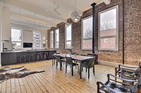 Situé dans un immeuble datant de 1922, le loft compte deux étages et sept pièces au total, dont trois chambres, deux salles de bain et une salle d’eau.