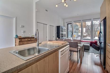 Atouts: plafonds de 11 pieds, plancher en béton ciré, terrasse commune sur le toit