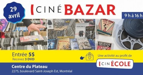 Ce rendez-vous, créé en 2008, est à ne pas manquer si vous êtes un cinéphile ou un collectionneur. Organisé par Mediafilm, Ciné-Bazar vous permettra de mettre la main sur des affiches, DVD, livres et revues. Cet événement populaire est une activité-bénéfice au profit de CinÉcole, un programme offrant aux élèves du secondaire plusieurs activités.
