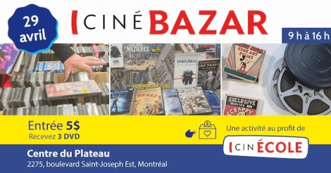 Sortez vos portefeuilles, le CinéBazar est de retour! Organisée par Mediafilm, cette convention permettra aux collectionneur.euse.s et amateur.trice.s de cinéma de s’acheter tous pleins de trucs qui viendront encombrer leur 3 ½! «Le lieu idéal pour acheter des affiches, DVD, livres, revues, etc.» peut-on lire sur l’événement Facebook du CinéBazar.