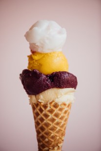 Figues et ricotta, banane et caramel, ou présentement, chocolat blanc bleuet végane, on connaît L’Armoire à glaces pour ses parfums originaux, mais vous, c’est quoi votre création préférée?
