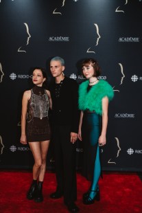 La jeune comédienne a créé son look elle-même à partir d’un excentrique col de fausse fourrure vert déniché en friperie. Une robe de la boutique indépendante montréalaise Éditorial et des souliers de la marque québécoise L’intervalle complétaient sa tenue.
