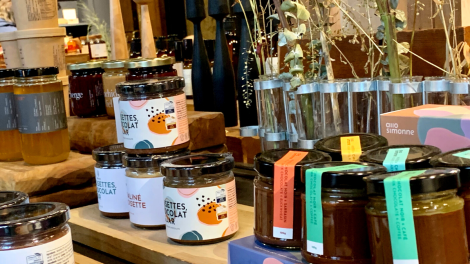 Parmi les plaisirs gourmets, on y trouve les tartinades de noisettes de Allo Simonne, du miel brut et classique de chez Miels d’Anicet, des produits chocolatés de Chocolat Dicitte, des bonbons Squish et du sirop d’érable.