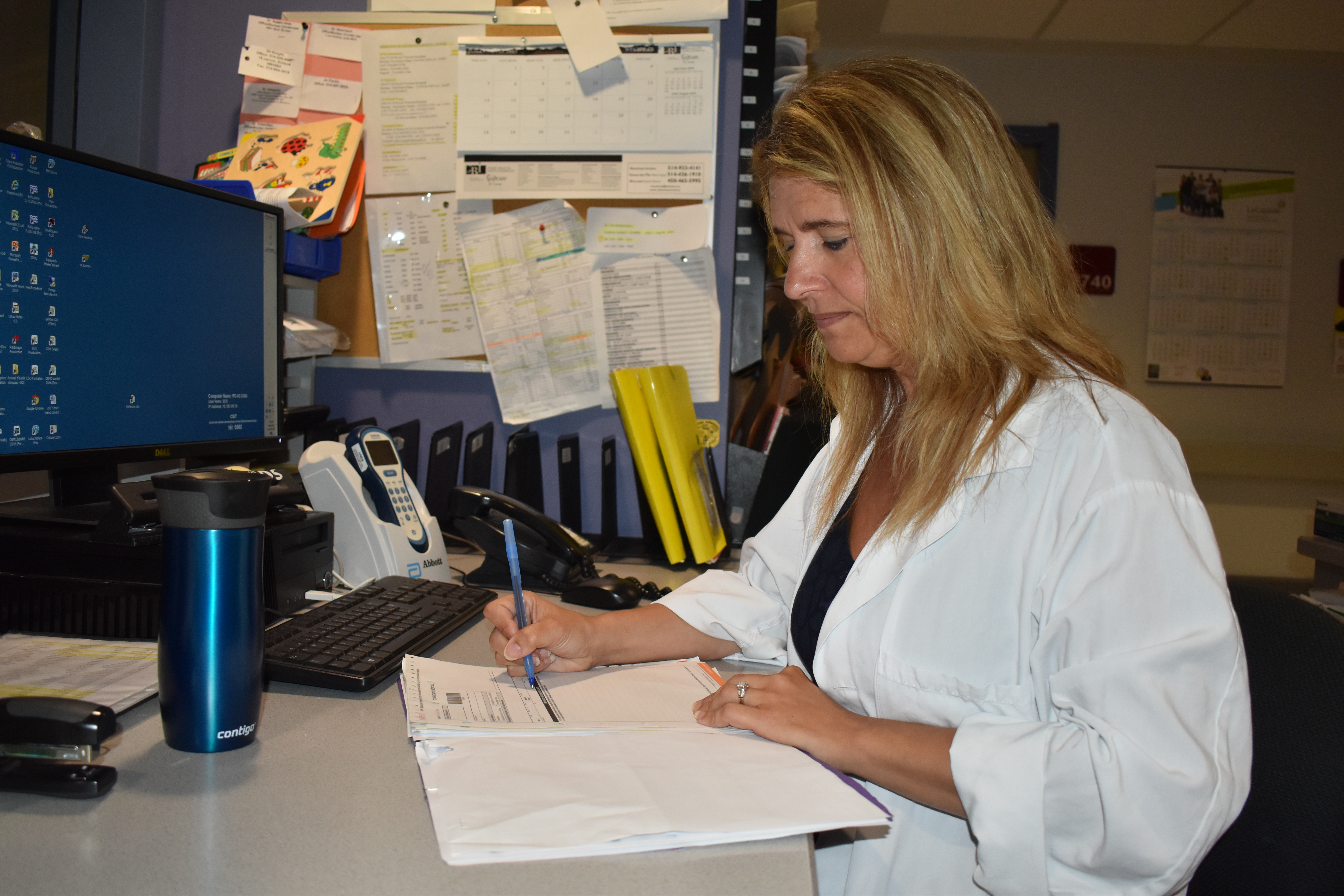 Une infirmière transmet les données d’une grille d’évaluation que NSQIP compare avec d’autres centres hospitaliers participants. Il est ainsi possible de travailler avec l’équipe clinique pour mettre en place des mesures scientifiquement prouvées pour améliorer les pratiques durant les chirurgies.