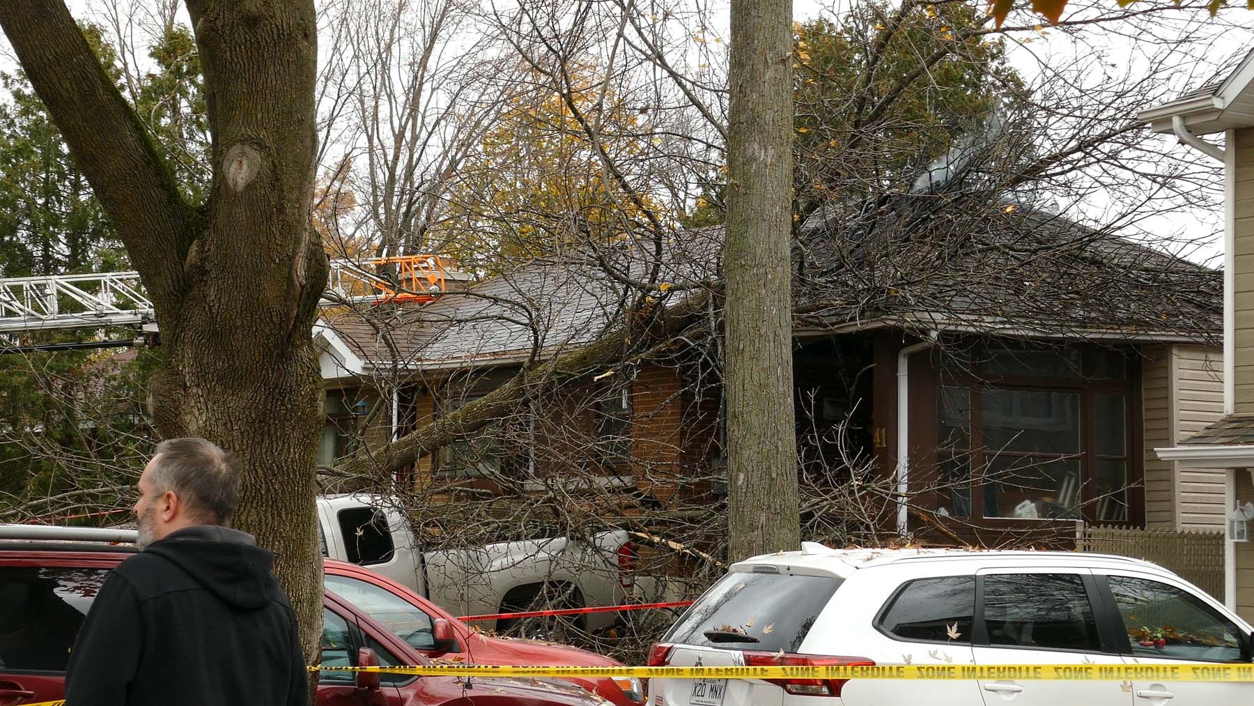 Des cols bleus sont dédiés au ramassage des nombreuses branches tombées et à la surveillance des arbres, en plus d’avoir à sécuriser les rues où sont tombés des fils électriques.