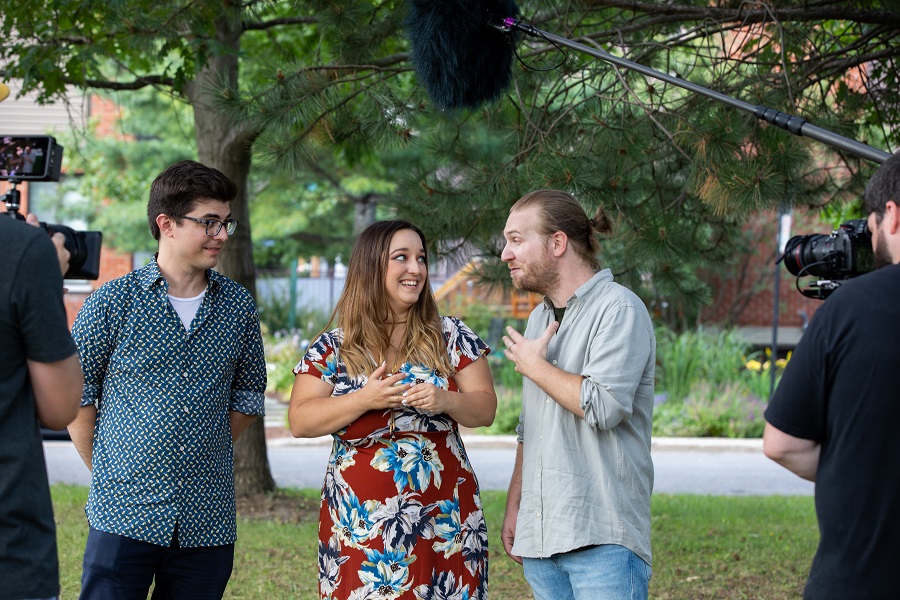 Après avoir ajusté micro, maquillage, et filmé une courte introduction au parc Marcel-Léger, l’équipe du TOO se lance pour sonner chez Lorraine. «C’est comme au théâtre, il faut donner le tout pour le tout», lance Simon Fréchette-Daoust, cofondateur de L’Oeil Ouvert.
