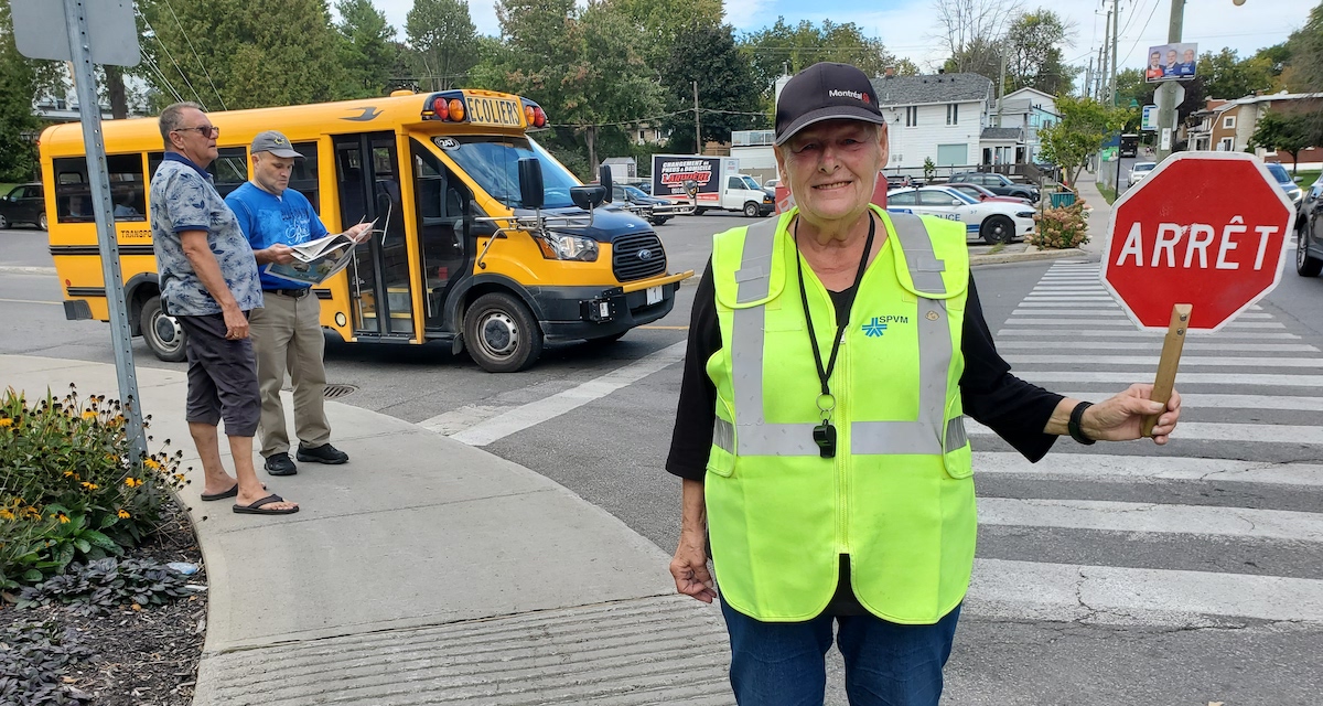 Pour la plupart des résidents de l’Île Bizard, Claudette Joly Boulay est un visage bienvenu et familier. Chaque jour d’école, madame Claudette se tient à l’intersection des rues Cherrier et de l’Église avec son gilet de sécurité néon lumineux et son panneau d’arrêt miniature afin d’accompagner en toute sécurité les jeunes enfants de l’île.