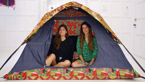 Et parfois la maison se déplace, comme c’est le cas de la tente fabriquée par Colas Eko. Ce dernier a utilisé des tissus traditionnels camerounais pour construire plusieurs outils utiles au matériel de camping. Il explore dans ses œuvres les notions d’identité et d’ethnicité.