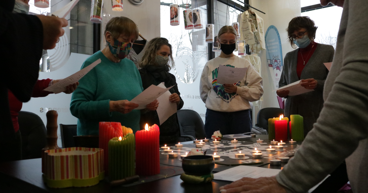 La place était à l’improvisation de par la pluie, alors que le centre avait prévu d’honorer au parc Beaudet les 14 victimes du féminicide le plus meurtrier du Canada, en plus des 18 femmes assassinées au courant de l’année 2021.