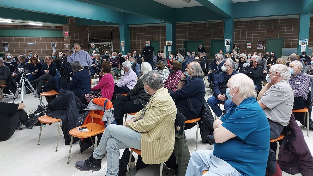 Réunis dans le sous-sol de l’église Saint-François-d’Assise, plus d’une centaine de citoyens ont pu s’informer des développements récents dans ce dossier et exprimer leur opposition au projet de train léger de CDPQ Infra.
