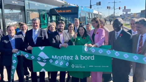 C’est sous un soleil radieux que de nombreux élus et représentants des organisations de transport en commun s’étaient donné rendez-vous jeudi à la gare de train Saint-Michel-Montréal-Nord, pour donner le coup de départ du SRB Pie-IX, quelques jours avant sa mise en service officielle, le 7 novembre. Une quinzaine d’arrêts seront alors en fonction, excluant les stations Bélanger et Jean-Talon, toujours en construction.