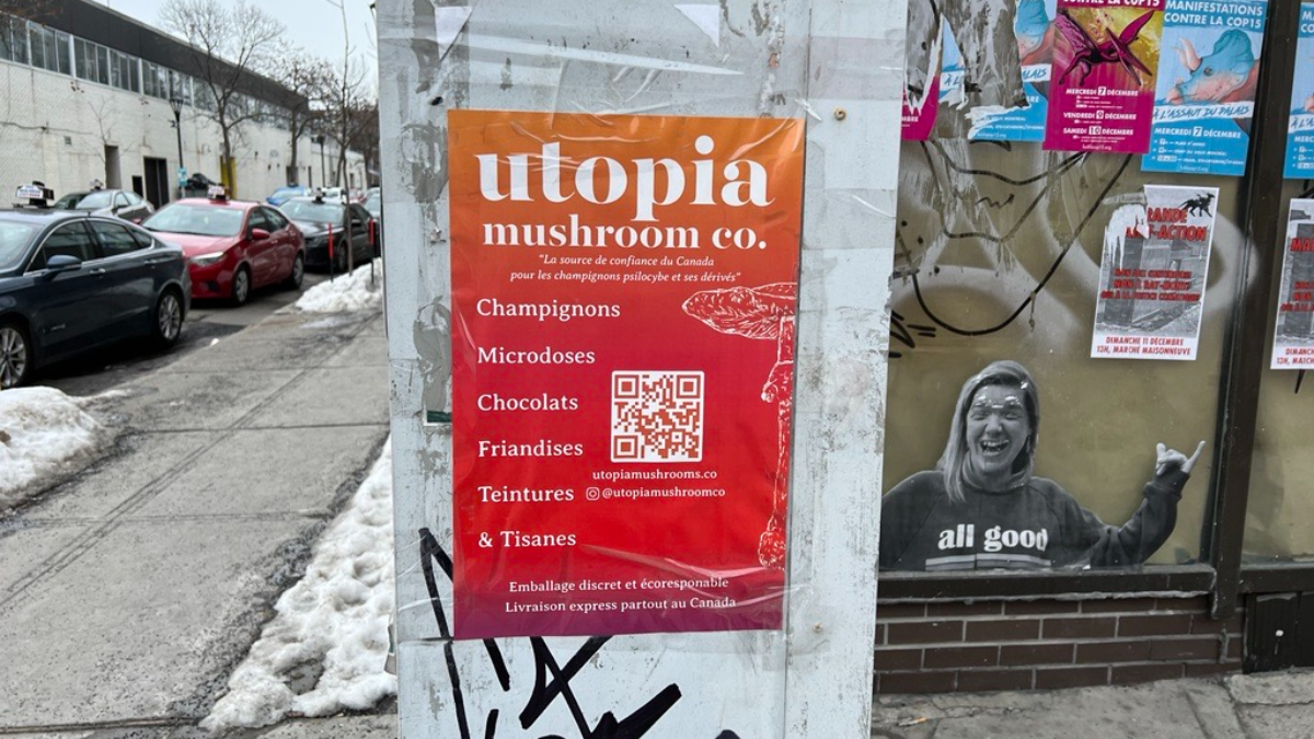 Des affiches faisant la promotion de la vente de champignons magiques font leur apparition à Montréal. La compagnie Utopia Mushrooms promet de livrer sa marchandise illégale en moins de 24h à domicile. Métro a repéré certaines de ces affiches dans les quartiers d’Hochelaga-Maisonneuve et du Plateau-Mont-Royal.