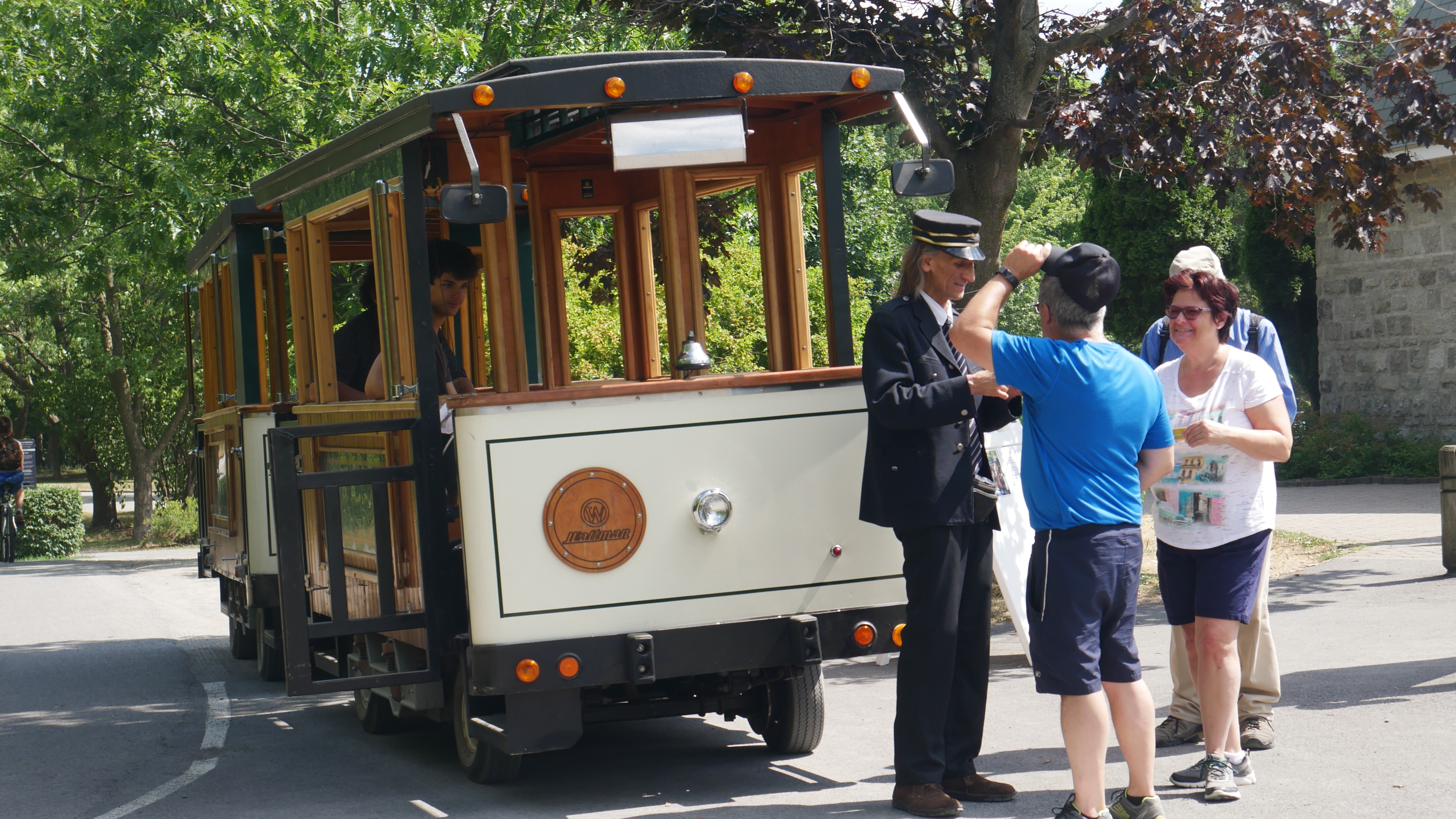 Construit par la compagnie montréalaise Wattman Trains & Trams, c’est le premier train de balade électrique en usage sur un site extérieur au Québec. Il peut transporter jusqu’à 25 personnes.