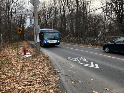 Jocelyne Leduc-Gauvin, présidente du comité de mise en valeur du Bois-de-Saraguay – parc situé à proximité – avait émis le vœu de voir une amélioration de la fréquence de la ligne d’autobus 68 et l’aménagement de places de stationnement à l’entrée du Bois-de-Saraguay.