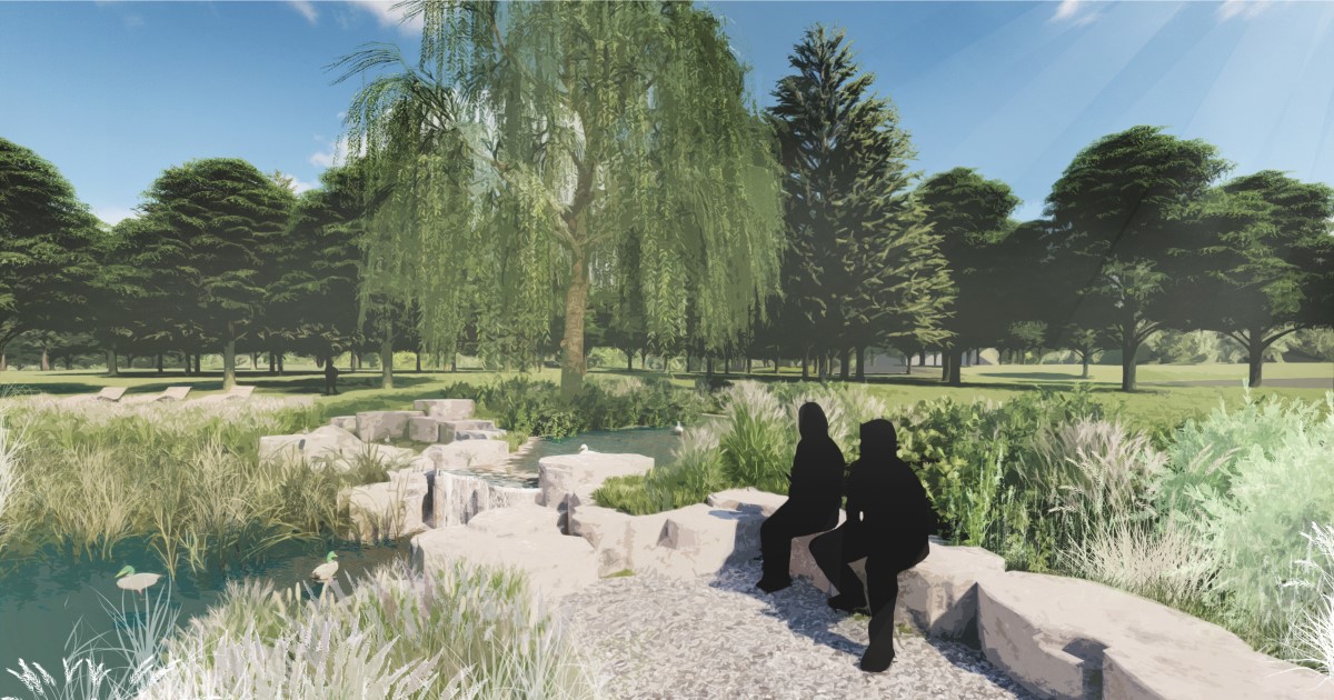 Les travaux de réfection de l’étang du parc Ahuntsic transformeront en grande partie ce plan d’eau. Une placette s’ajoutera pour profiter de la vue et le jet d’eau disparaîtra, cédant la place à une cascade.