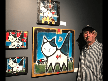 Le fameux chat «Kat Mandou» trône comme un roi dans le bestiaire de l’artiste. Ce dernier se plaît à représenter les animaux dans un style que l’on qualifie «d’art contemporain joyeux».