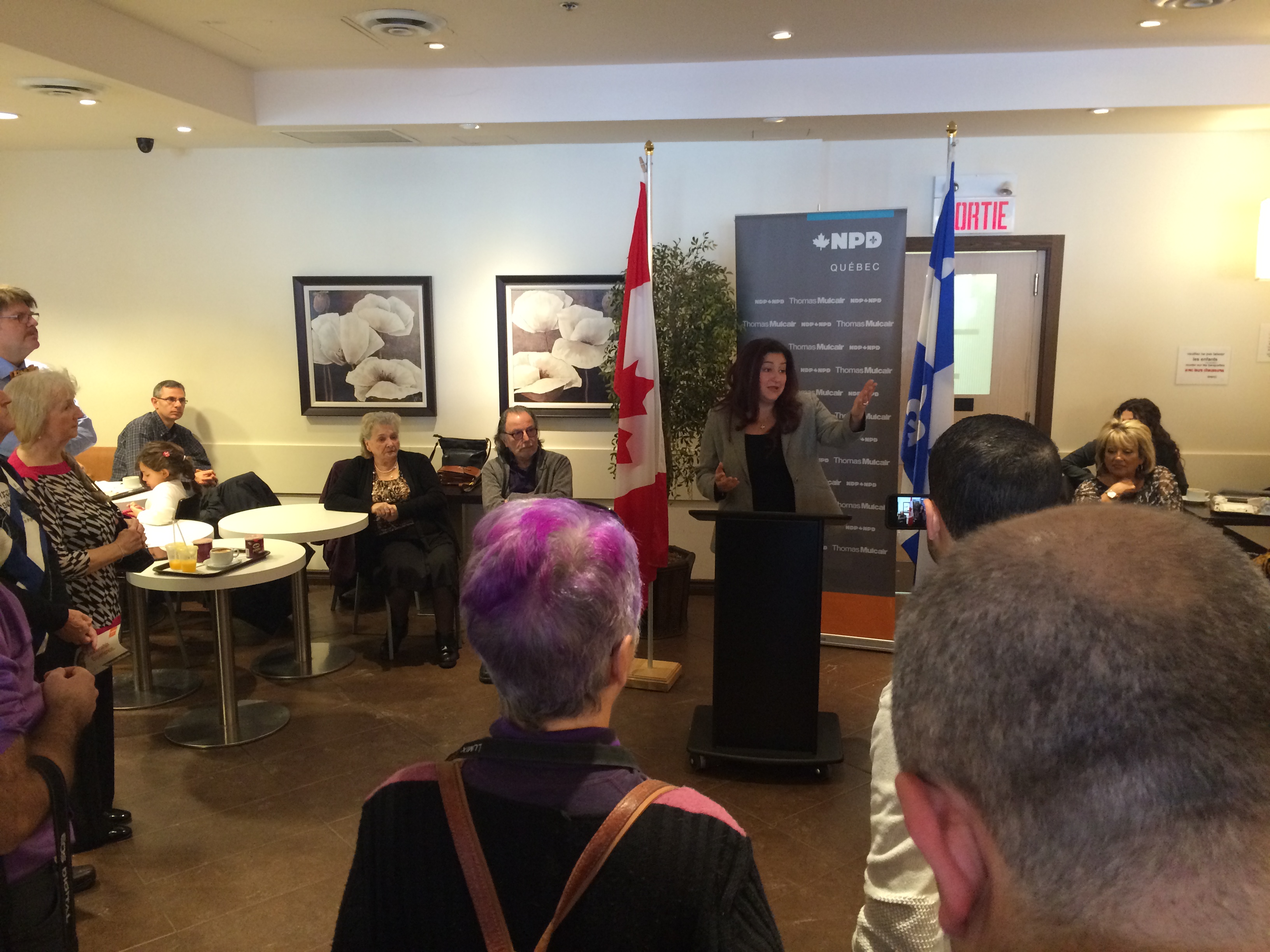 Mme Mourani a fait son annonce entourée de députés du NPD venus l’appuyer. On a noté la présence d’Alain Giguère, député de Marc-Aurèle-Fortin, François Pilon, député de Laval-Les Îles, et Rosane Doré Lefebvre, députée d’Alfred-Pellan. La date officielle de l’investiture n’a pas encore été fixée.