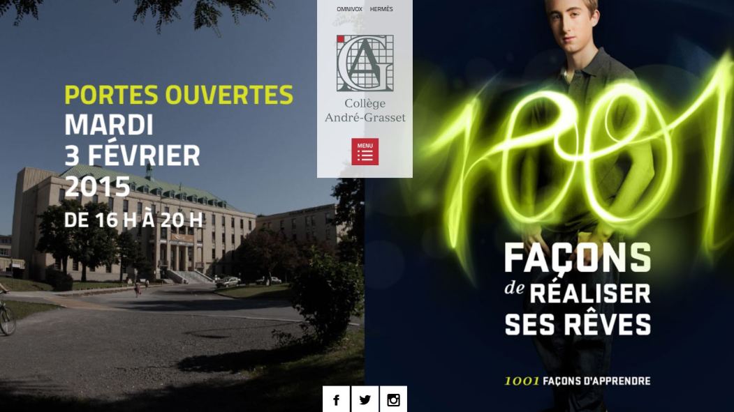Le site Internet du collège André-Grasset (www.grasset.qc.ca) a fait peau neuve. En ligne depuis mardi dernier, le nouveau site se veut dynamique et facile d’utilisation. Il s’adresse aux étudiants –actuels et futurs – à leurs parents et à l’ensemble de la communauté.