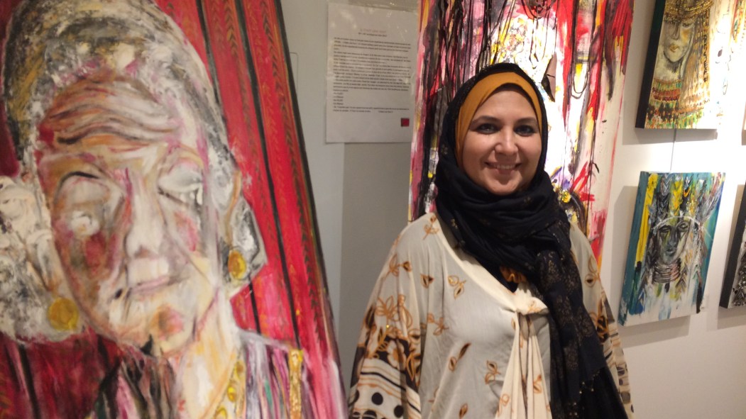 «Je veux m’éloigner de l’apparence ou les détails physiques. Probablement parce que je porte le voile, je vise la femme en tant qu’esprit et culture, souligne-t-elle. Mais, je m’identifie comme artiste dans l’absolu et non pas comme peintre musulmane ou d’une communauté.» Ainsi on peut trouver sur ses toiles des visages de femmes, des tresses nouées, des objets de parures, mais aussi des rideaux, des fenêtres ou des portes derrière lesquelles elles se cachent.