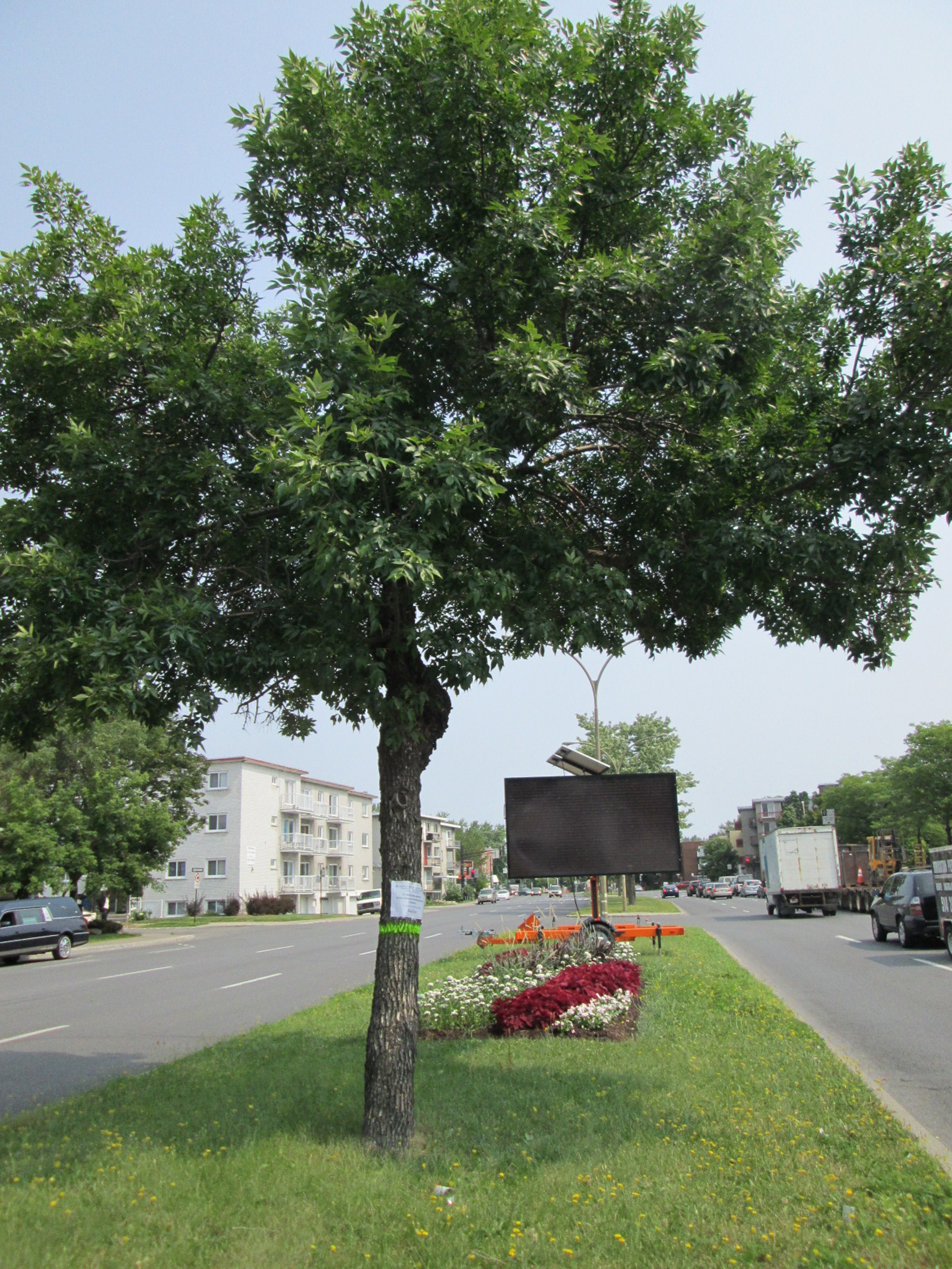 En 2015, les employés de la Direction des travaux publics d’Ahuntsic-Cartierville ont injecté l’insecticide systémique TreeAzin à 1750 frênes, majoritairement dans les parcs, sur les 7600 que compte Ahuntsic-Cartierville.