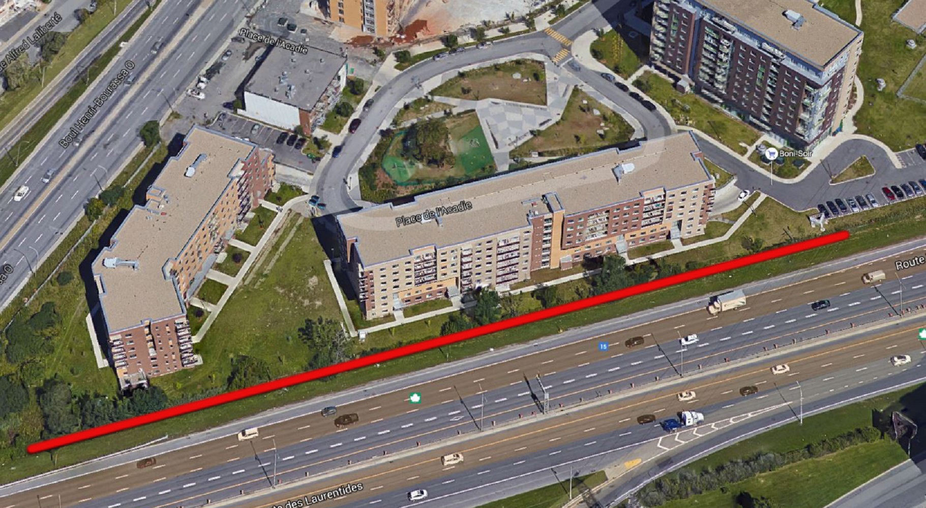 Leurs bâtiments longent l’autoroute 15 et aucune protection n’a été mise en place pour réduire les nuisances sonores.